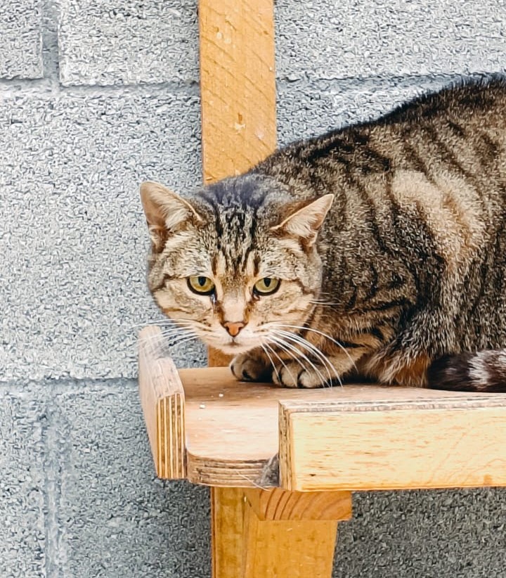 LUMBRE es una hermosa gata atigrada de 12 años (nacida el 31 de mayo de 2013) con una historia de supervivencia y fortaleza que conmueve. Lleva en el centro desde mayo de 2016, y durante parte de ese tiempo vivió en libertad por los alrededores, disfrutando de su independencia y el contacto con la naturaleza a su manera. Su vida cambió drásticamente cuando sufrió un brutal ataque por parte de un perro. Llegó a estar tan grave que todos pensábamos que no lo superaría… pero Lumbre demostró ser una auténtica luchadora. Contra todo pronóstico, se recuperó y hoy lleva una vida tranquila, compartiendo espacio con otros gatos con los que se relaciona sin problema. LUMBRE no se deja tocar, y es importante entender y respetar su necesidad de espacio y su forma particular de relacionarse. Por eso, buscamos para ella un hogar especial: una familia paciente, sensible, que no espere una gata faldera, pero sí una compañera silenciosa y serena que valore la paz y el respeto mutuo. LUMBRE no necesita grandes gestos, solo un lugar seguro donde pasar sus años dorados rodeada de cariño, aunque sea a distancia.