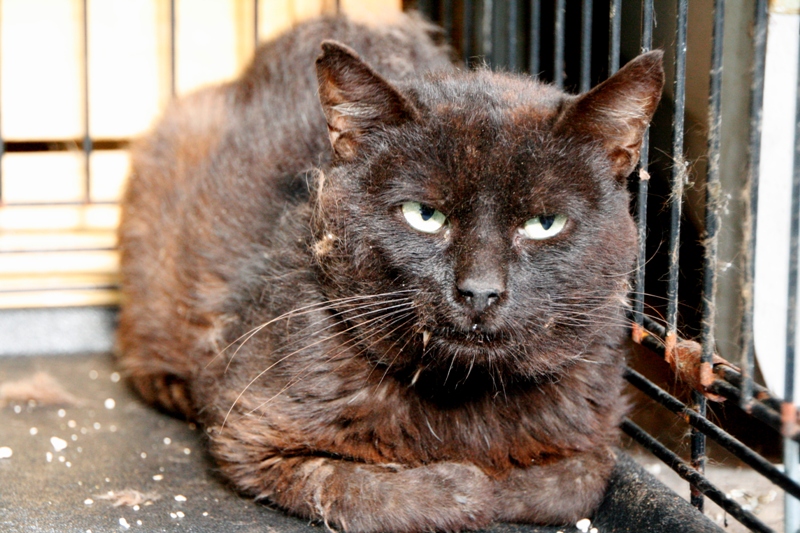 MADRÁS es este pobre gato…Ha sido recogido de la calle en estas condiciones tan lamentables: está sucio a más no poder y tiene la boca muy muy mal. El dolor que siente es tan fuerte que apenas come y no se puede limpiar, por lo que hasta las piedras del arenero se le quedan pegadas…