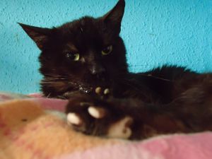 Además, tiene un problema de estomatitis (inflamación de la mucosa bucal). Ante esto no podemos hacer otra cosa que vigilar, y cuando le notemos con dolor llevarle para que le pinchen córtico.