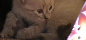«Maky es la blanquita, tipo siamés, es a la que más le gusta jugar con los perros, no tiene miedo a nada ni a nadie, todo el mundo sirve de juguete!! Es úuper cariñosa como sus dos hermanas y posiblemente la más brutota, la encanta cazarlas»