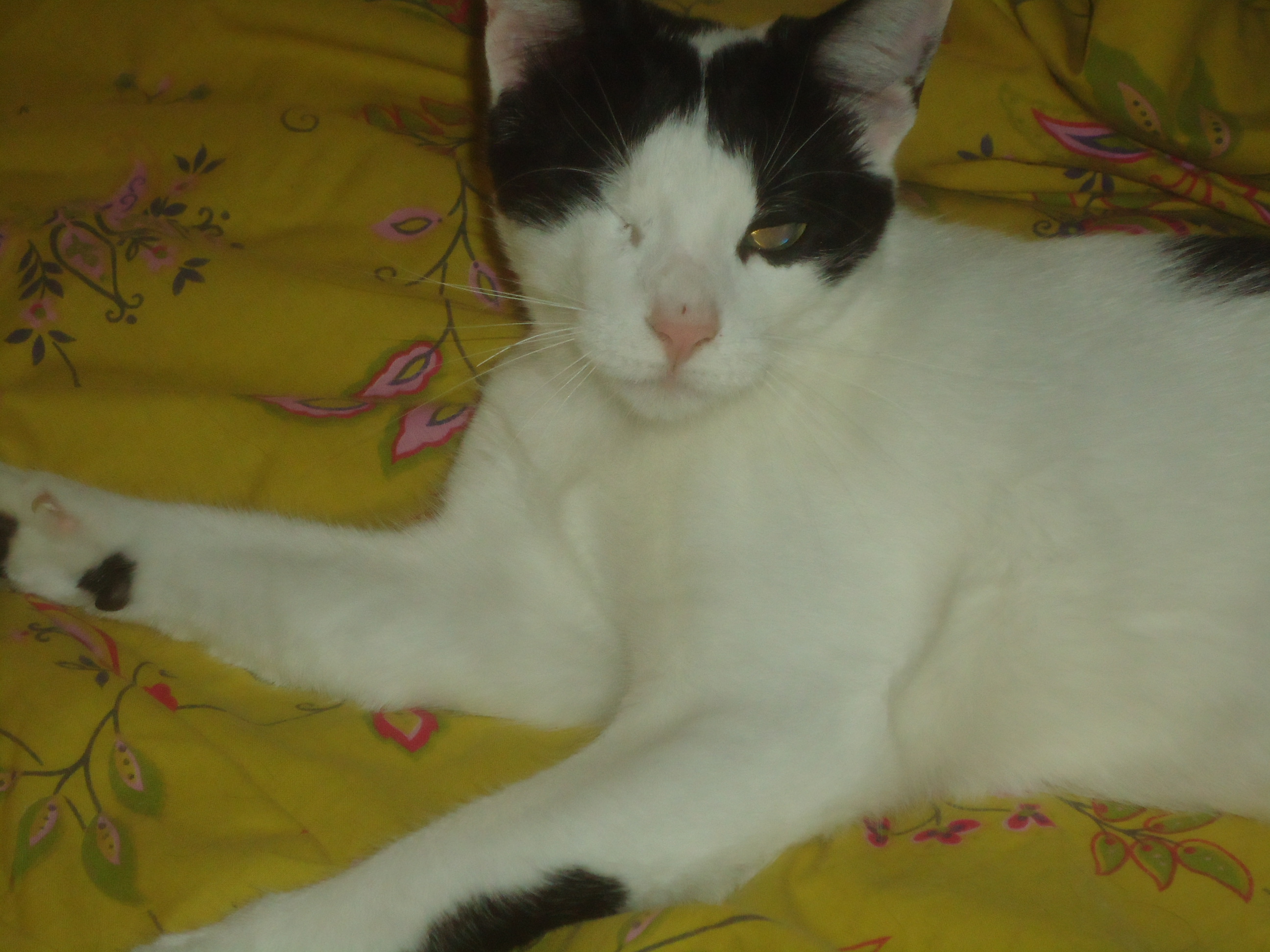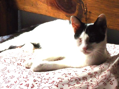»Margot cada día está más guapa, tiene un pelo precioso y muy suave. Le encanta que le rasques, no para de ronronear. El tener sólo un ojo no le impide para nada hacer vida completamente normal.