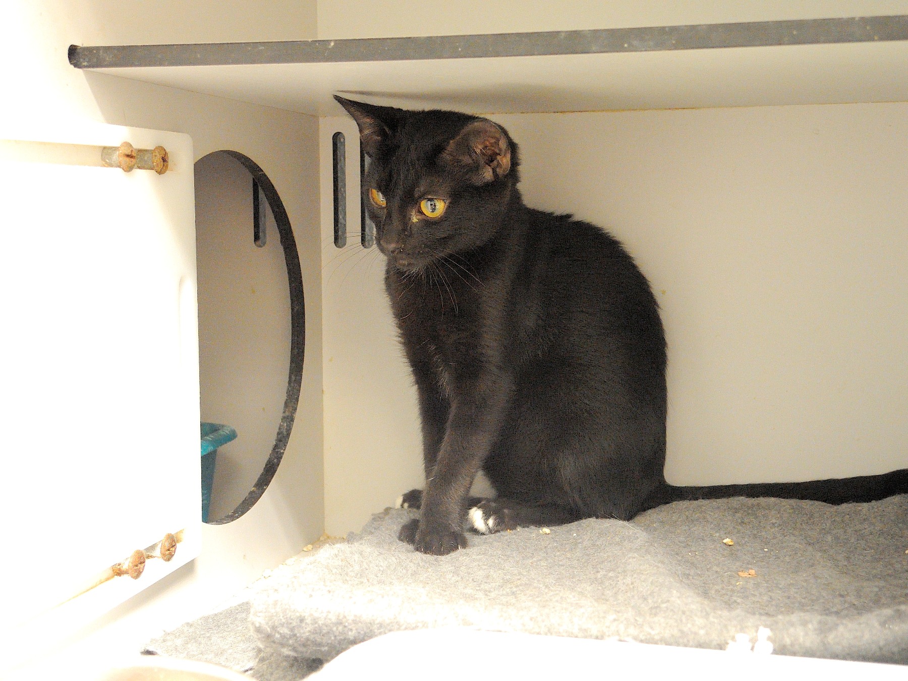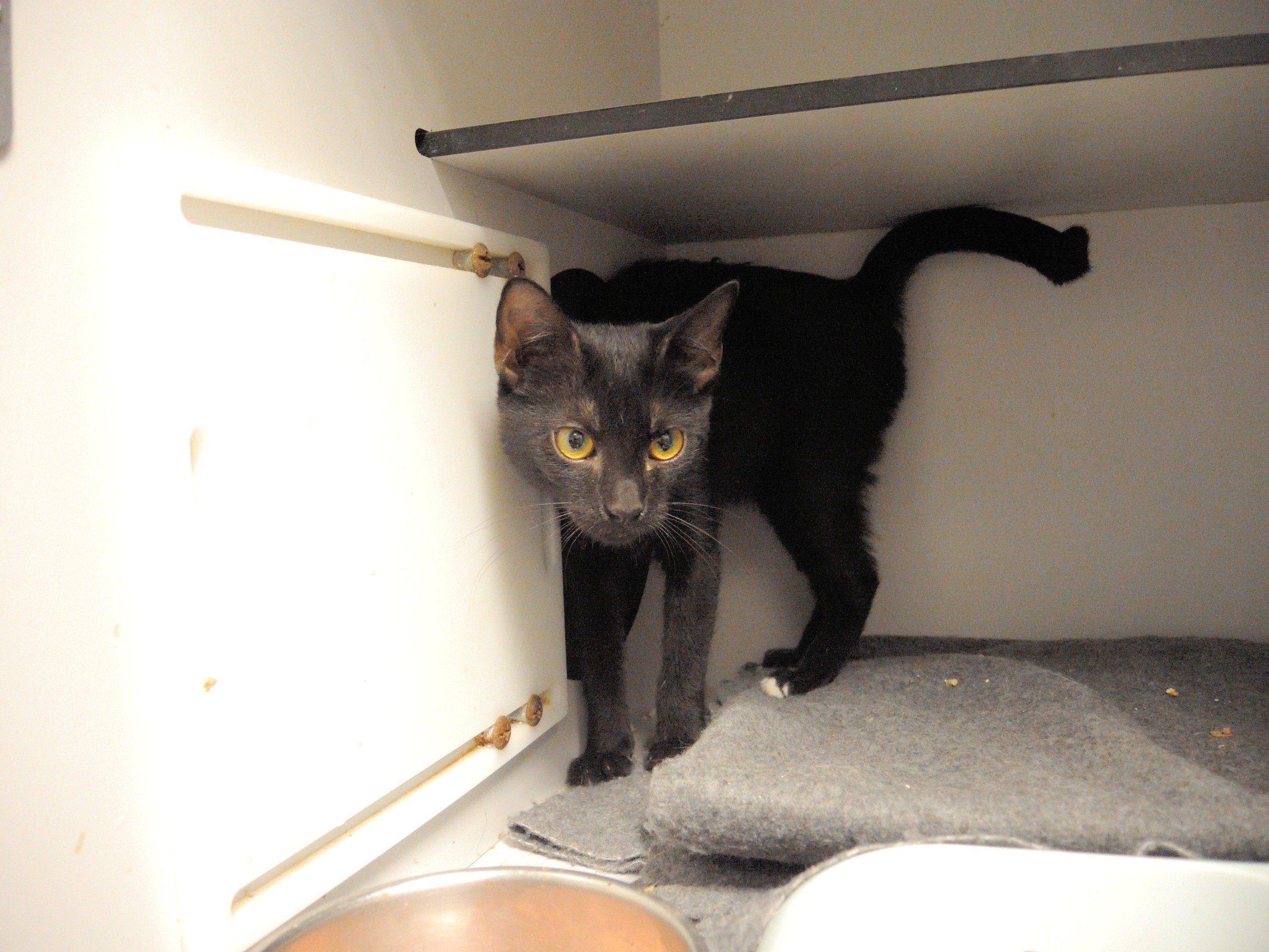 Mariya es esta preciosa pantera de unos 4 meses y medio aproximadamente. Llegaba  a la perrera hace unas semanas muy asustada pero con el paso de los dias y las rutinas que alli tenemos hemos conseguido que comience a confiar.Aunque aun se muestra algo miedosa siente curiosidad por acercarse a nosotras e incluso podemos acariciarla. Mariya Necesita un buen hogar donde poder acabar de confiar o pronto saldra a los recintos. ¡¡Ayuda!!