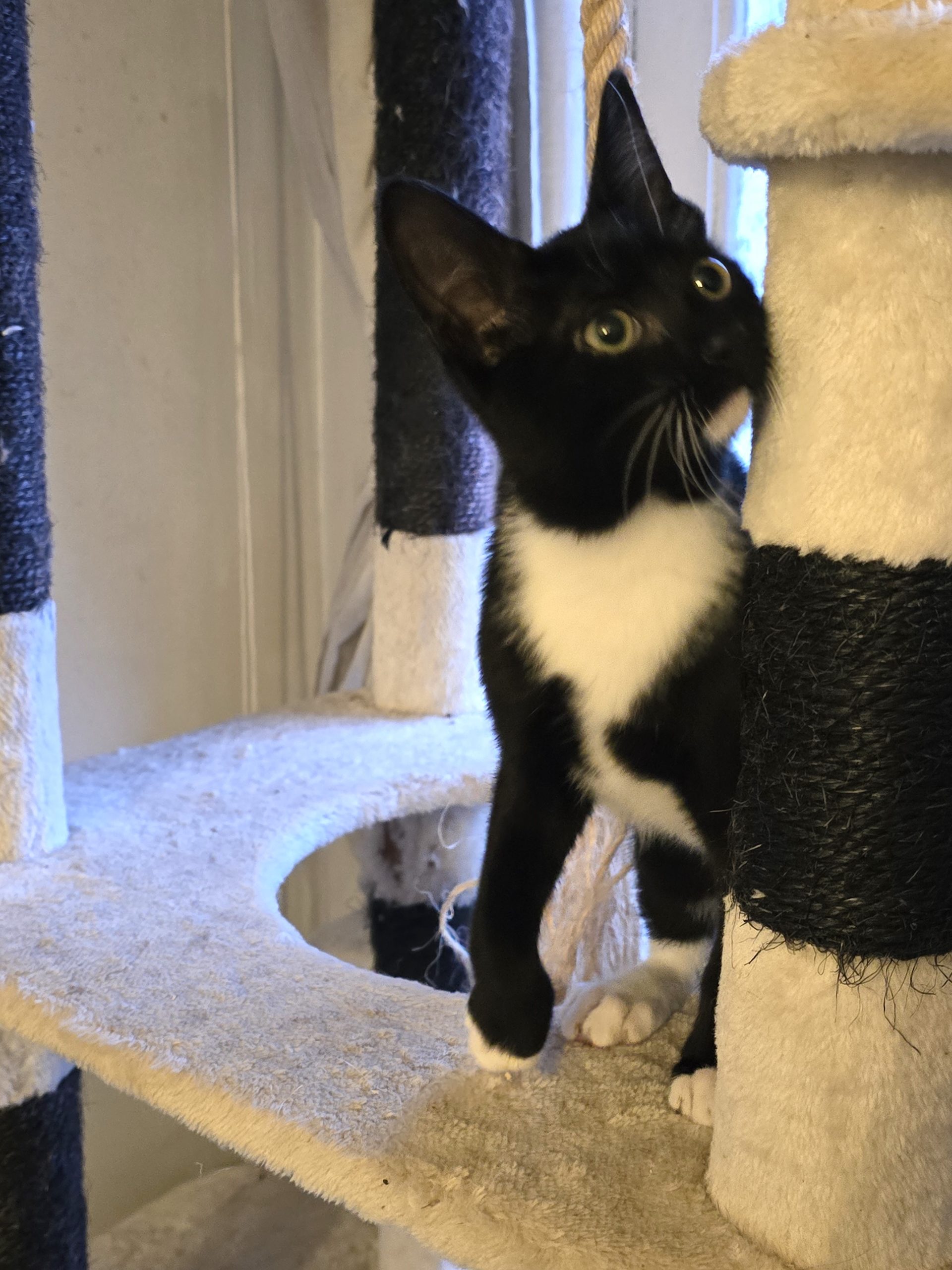 La casa de acogida de MARKOS nos cuenta que: «MARKOS es un gato muy juguetón, como todo cachorro, se lleva bien con todos los gatos. Con los perros está  un poco a la defensiva. No termina de congeniar con ellos pero se respetan.»