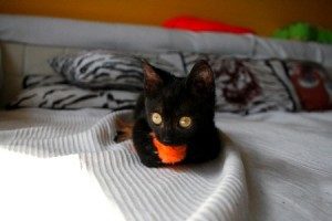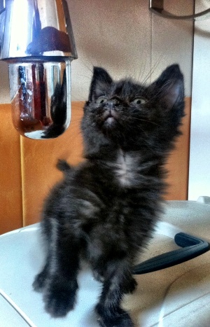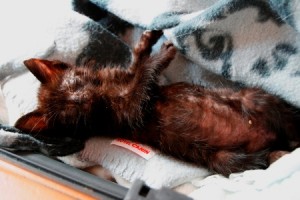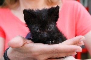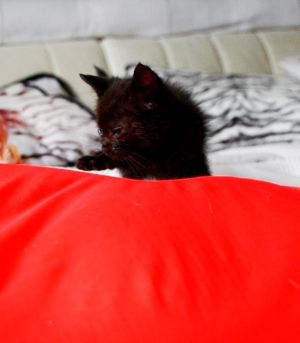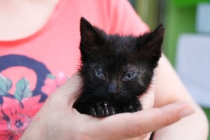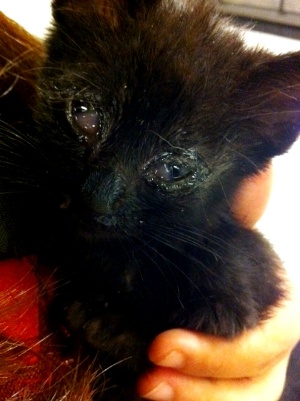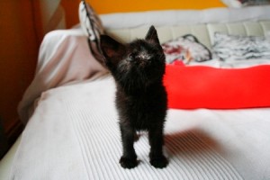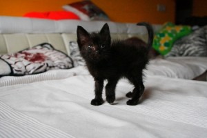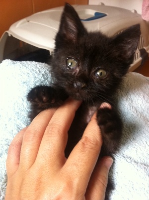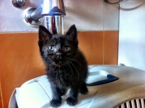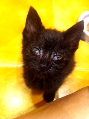 Marnie es una gatita preciosa que apareció huerfanita en la calle. Tendrá un mes, cabe en la palma de la mano. Tiene los ojitos mal y catarro pero ya le estan mejorando con el tratamiento, de hecho ha empezado a comer muy bien, así que dentro de poco habra que poner las dos manos para que entre… Es muy cariñosita, ha empezado a ronronear y en cuanto te ve, pide mimos y atenciones. Un amor vaya…