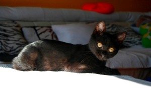 Marnie cada dia esta mas guapa, desde su casa de acogida nos dicen lo siguiente;.-» Marnie es una gatita cariñosa y juguetona, casi todo el tiempo esta en una habitacion ya que uno de los gatitos la pega, pero con el otro se lleva muy bien, asi que puede convivir con ellos perfectamente. Una peculiaridad es que su pelo siempre huele muy bieny despues de haber pasado la tiña es abundante y brillante. Toda una panterita esperando un nuevo hogar».-