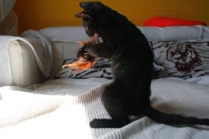 Marnie ya esta totalmente curada de su tiña, le ha salido un pelo negro brillante y esta preciosa. Desde su casa de acogida nos dicen lo siguiente;.-» Despues de estar casi dos meses con medicaciones, pasar una tiña y un catarro…Marnie esta totalmente curada. Es movida y muy cariñosa, le encanta jugar con el pelo. Es un amor».-