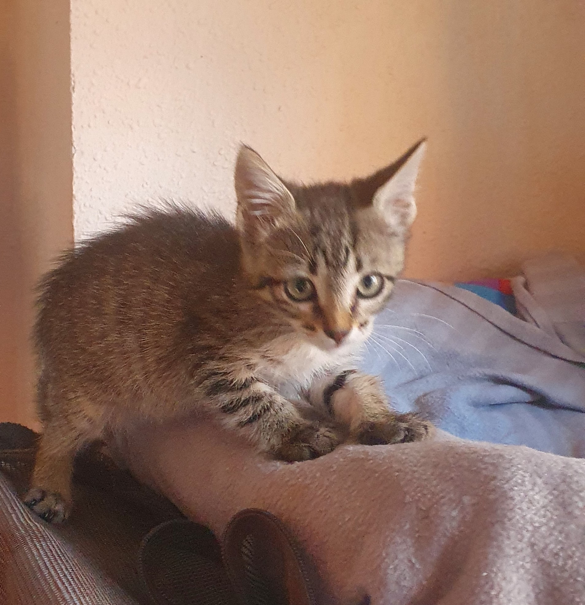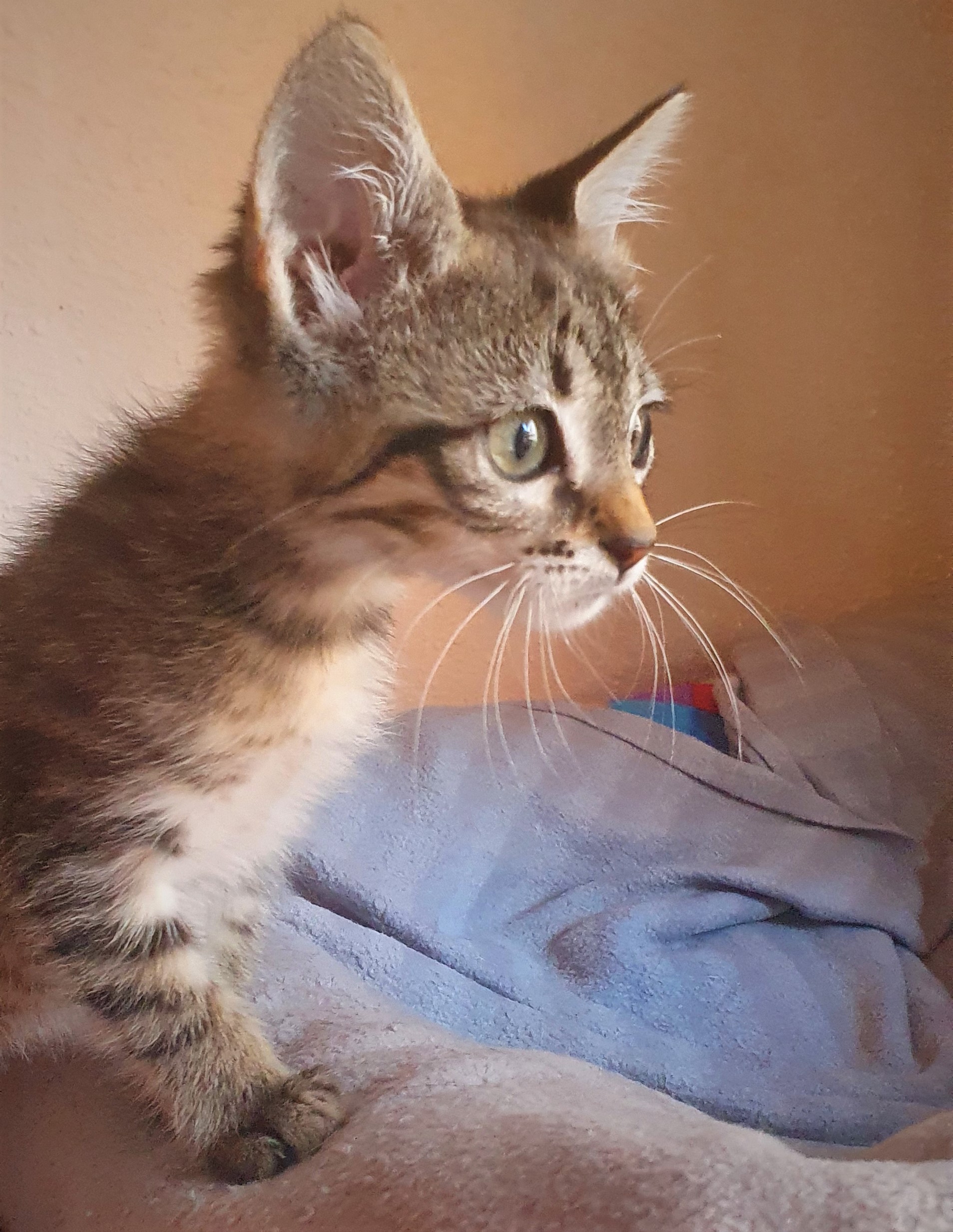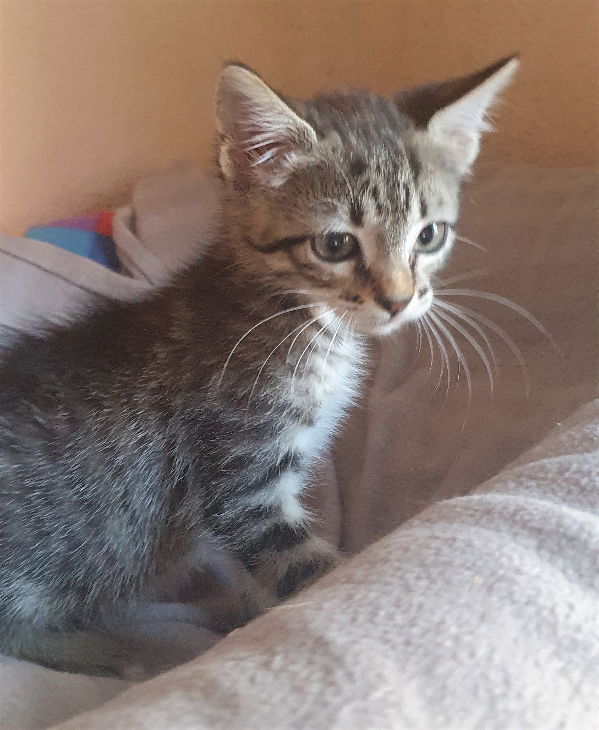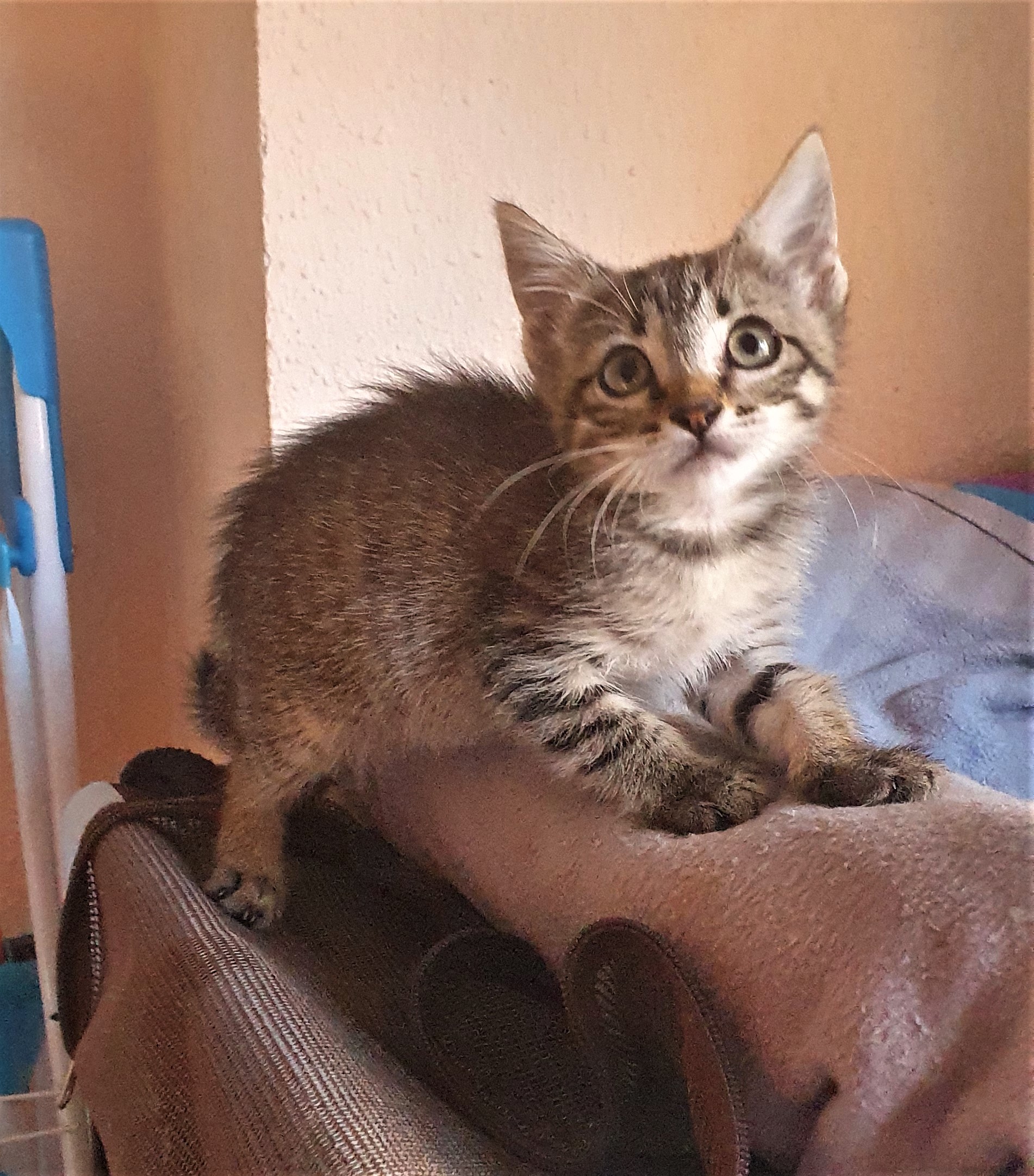 Marvel es una belleza atigrada que llegó hasta nosotras hace un tiempo. Ya tiene su primera desparasitacion hecha. Es un poco timida de primeras pero en cuanto la coges y les das unos mimos empieza a ronronear y se siente segura.