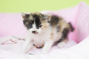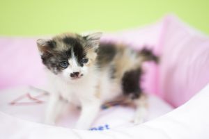 Es muy chiquitina, solo pesa 300 gramos… llegó con un ojito mal pero tras un par de días de colirio está como nueva.