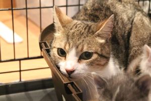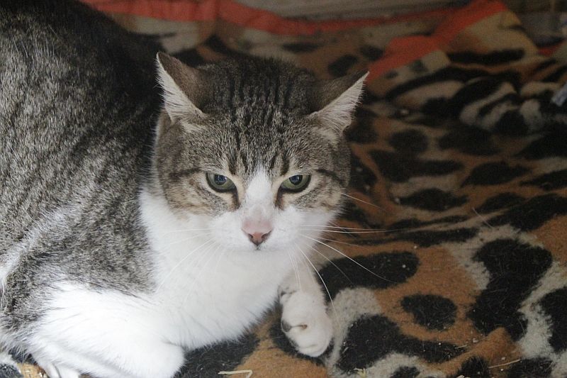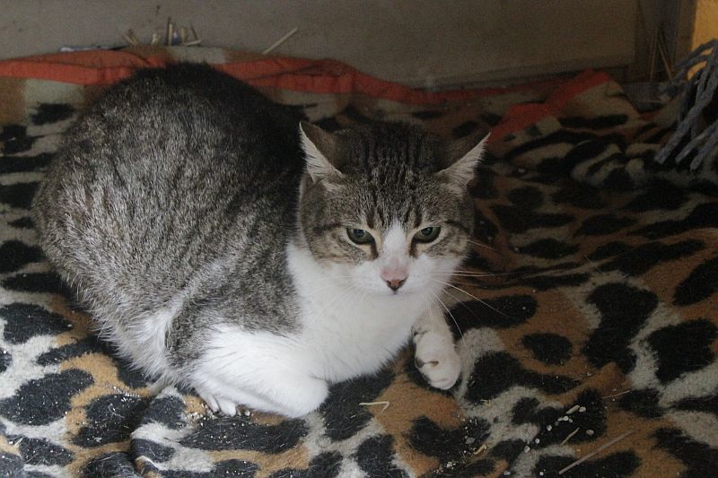 Con todo lo que ha pasado esta belleza de gatita (ir a la perrera, parir allí, cambio de ubicación con sus chiquitines…) al principio se muestra algo tímida…pero luego es una gatita muy buenecita y tranquila