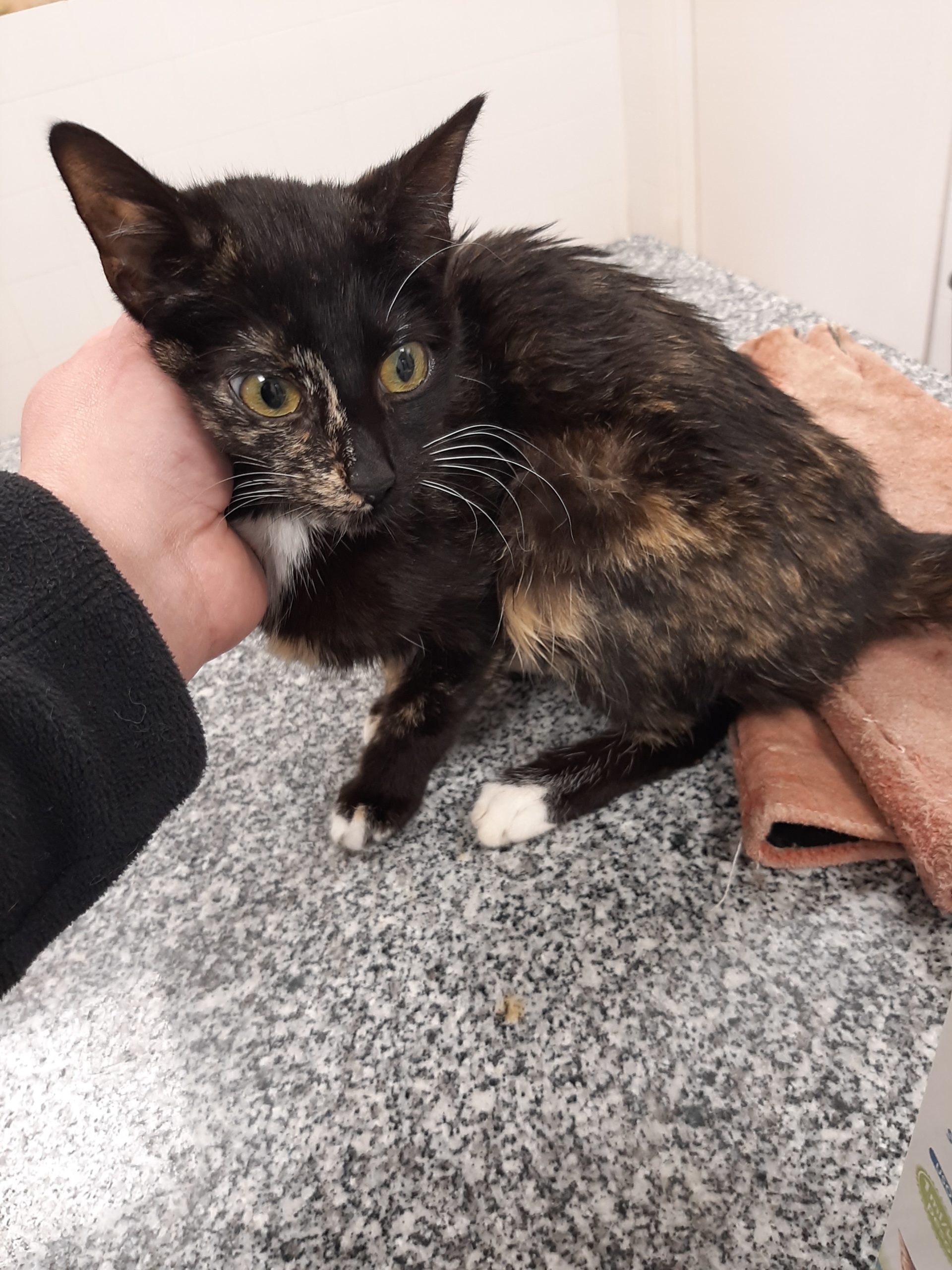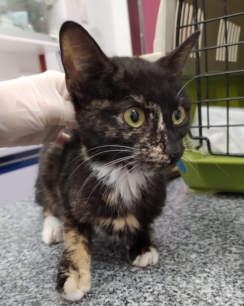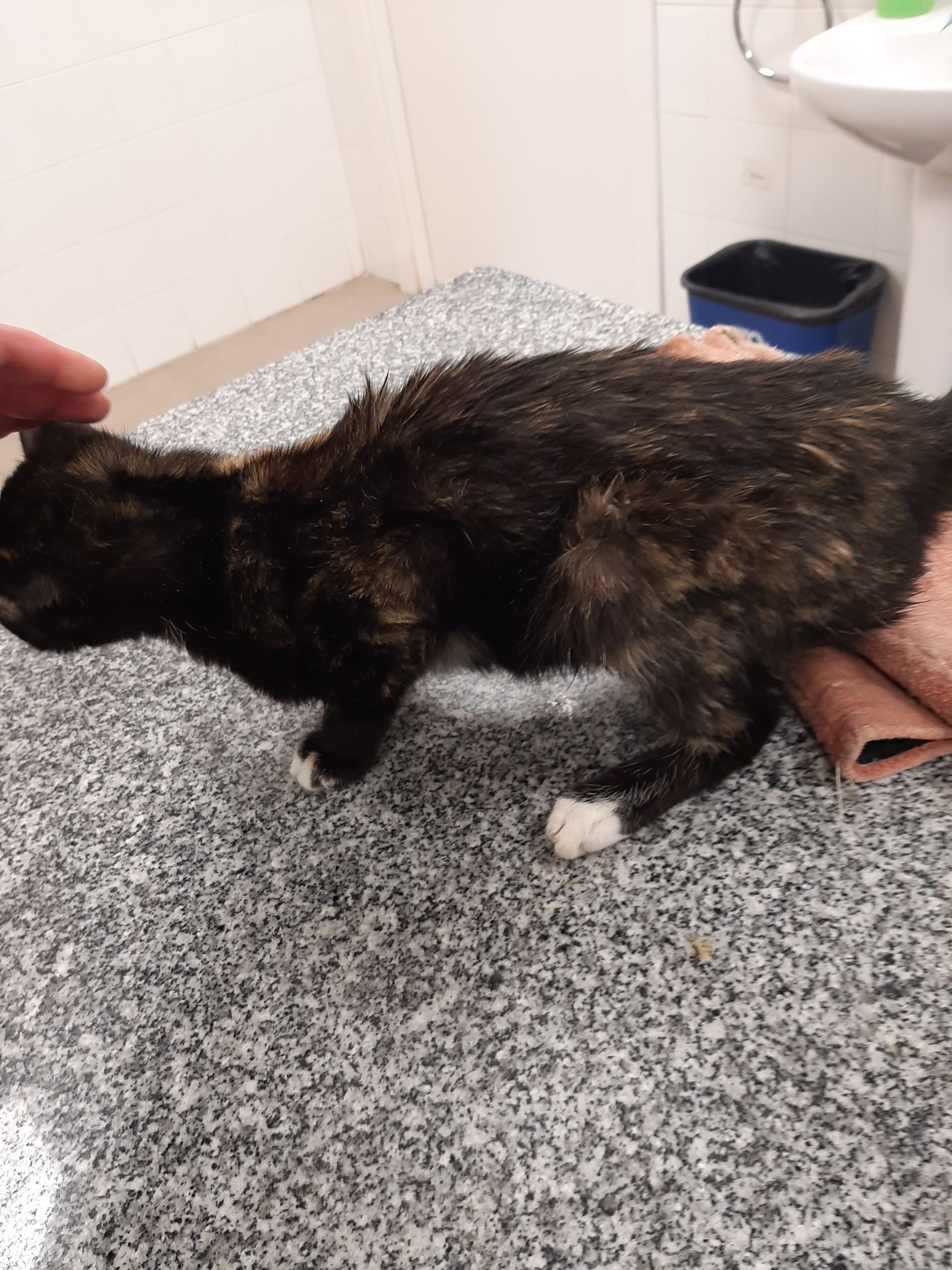 La analitica mostraba muchisima anemia (tan solo tenia un 9% de hematocrito) e infección. Se le han realizado varias pruebas para descartar enfermedades infecciosas , un frotis sanguíneo y una ecografia. Es negativa a pan leucopenia felina, a leucemia y a inmunodeficiencia (sabemos que pasada la cuarentena debemos retestar) . En la ultima analitica los valores habían mejorado bastante gracias al suero y los antibióticos además de la buena alimentación.
