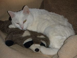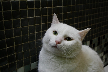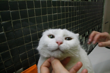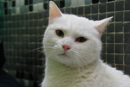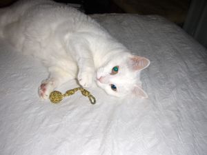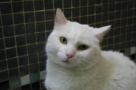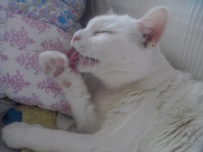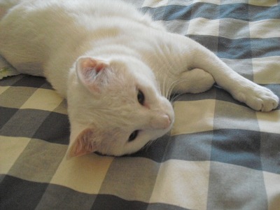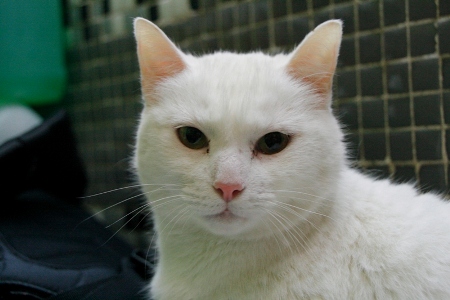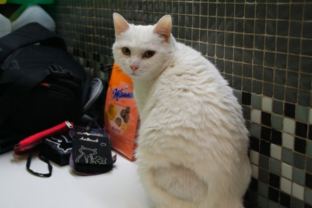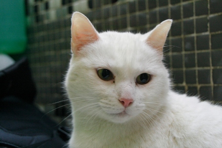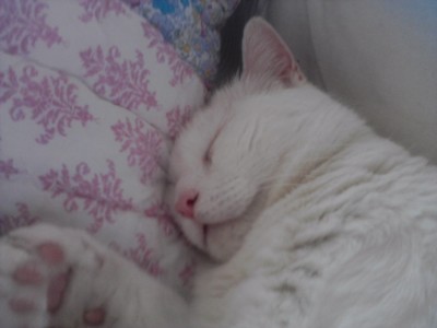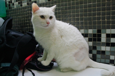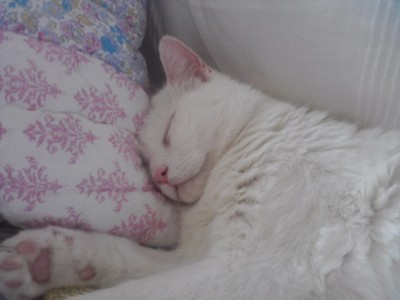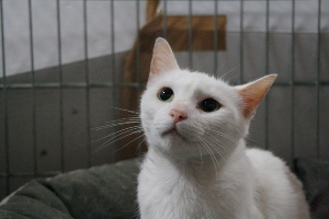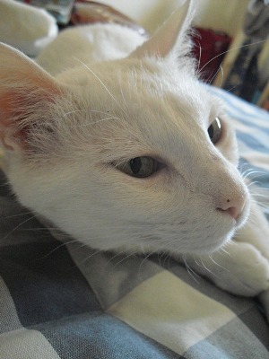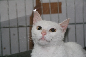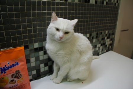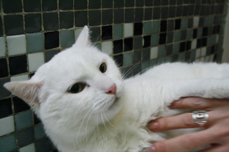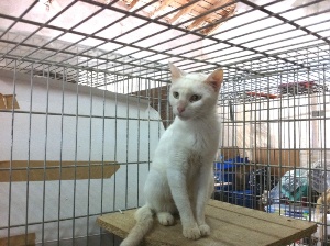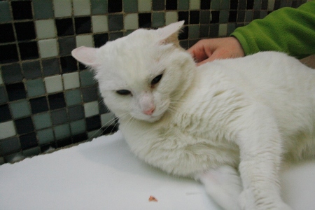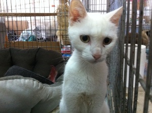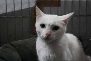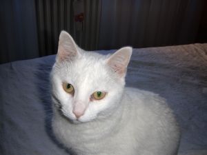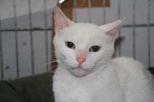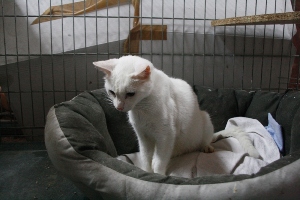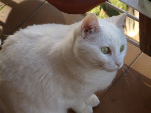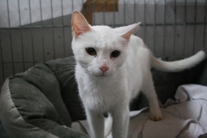 Mikaela es esta preciosa gatita blanca. Ha tenido una camada que en breve estará en adopción.