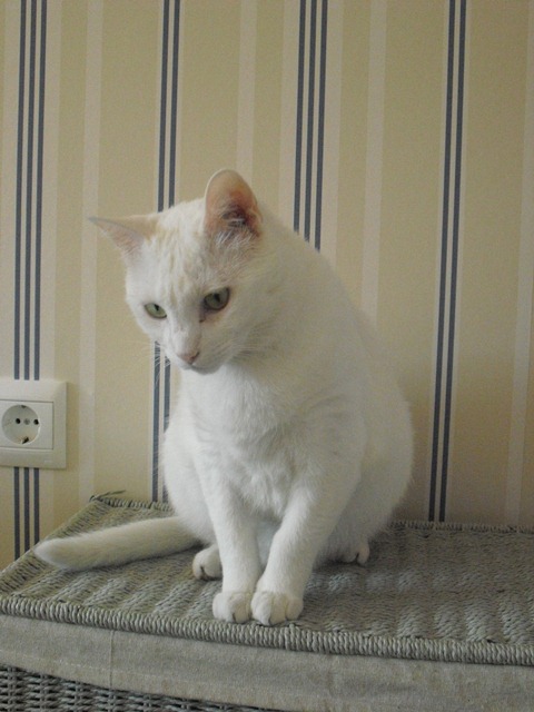 «Mikaela sigue tranquila. Si quiere mimos se acerca, le das un par de sobeteos y se va contenta, tampoco le gusta que le agobien mucho. Las latas no le hacen gracia y la jalea de malta tampoco, en cambio le encanta todo lo que sean snacks gatunos (galletitas de malta, barritas de pollo, etc.) y también te ronda cuando comes a ver si le das propina (pero no es pesada, se pone al lado con cara de pena)«