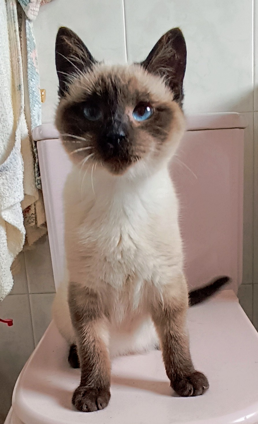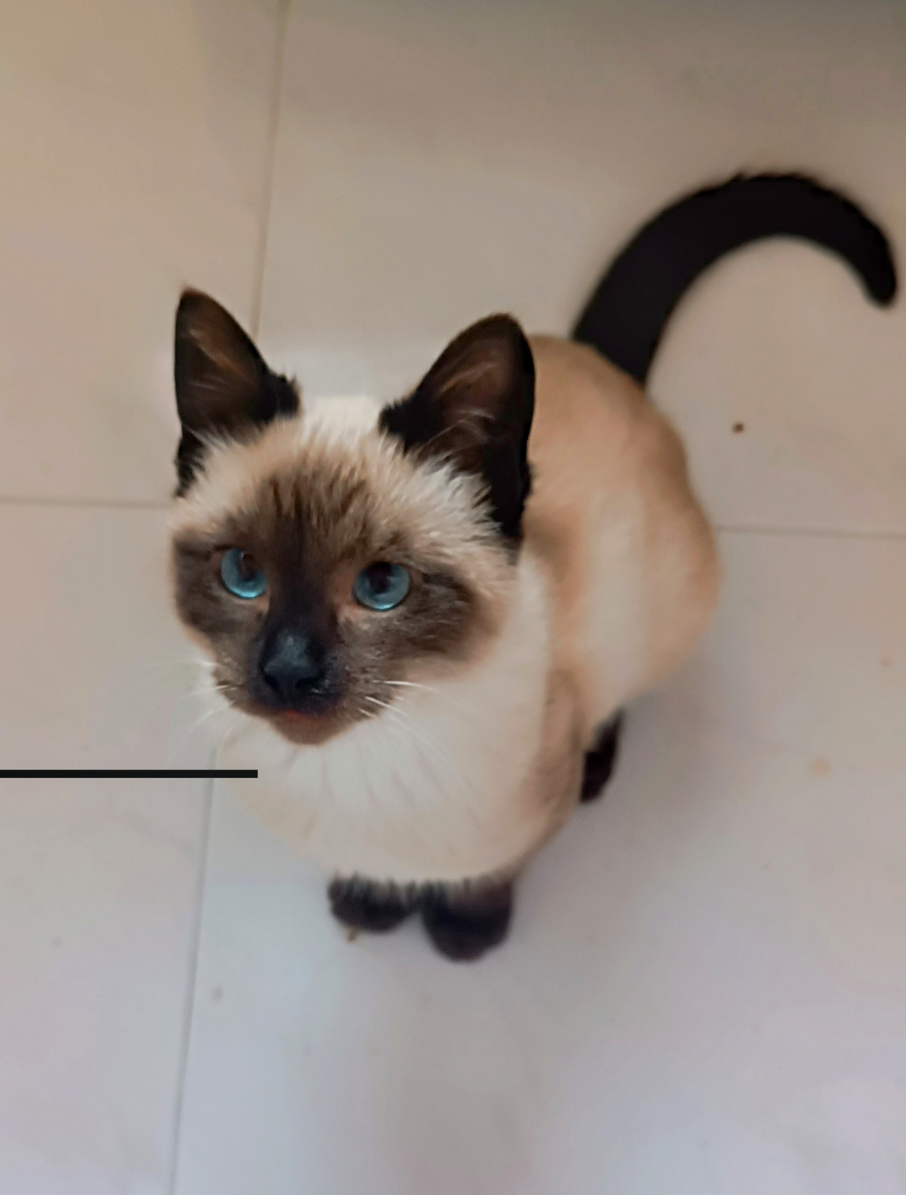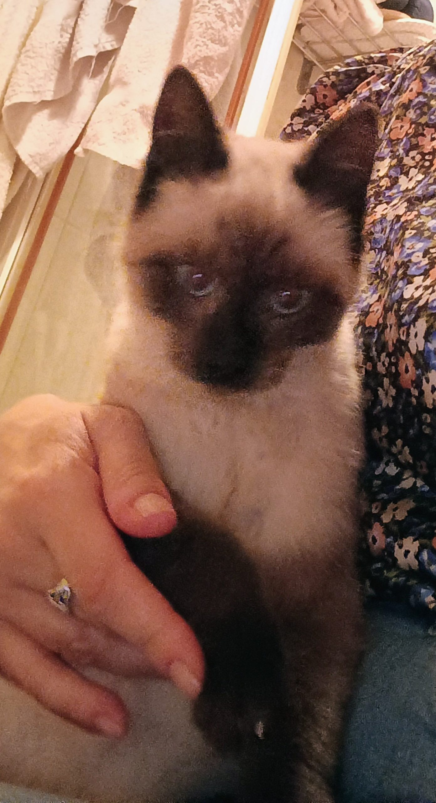 MINIPOM es un siamesito recogido de la calle. Tiene aproximadamente unos 4 meses, pesa 2 kilitos y medio y es un amorcete. Todo lo que quiere es jugar y que le acaricies, ronronea tooooodoooo el rato.