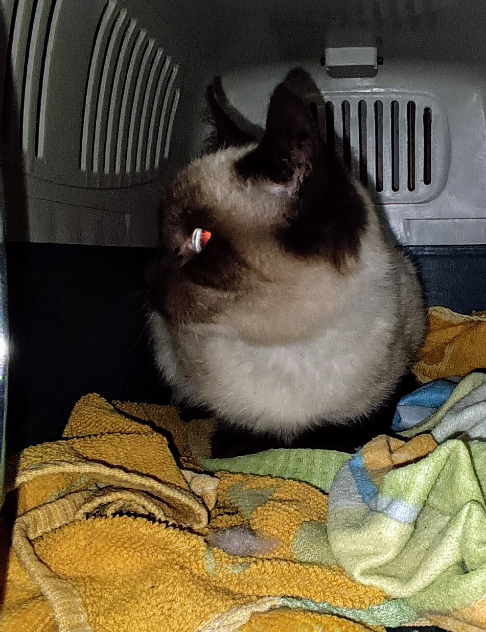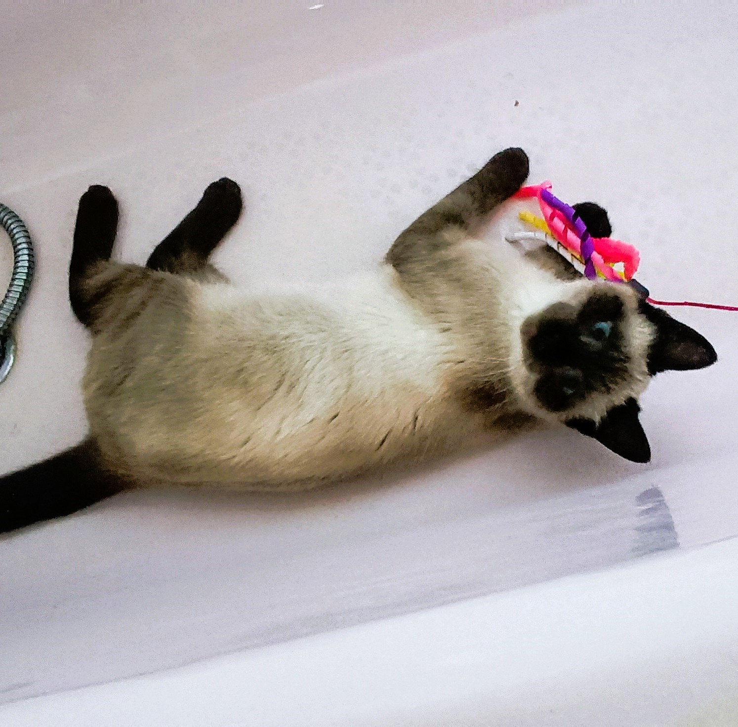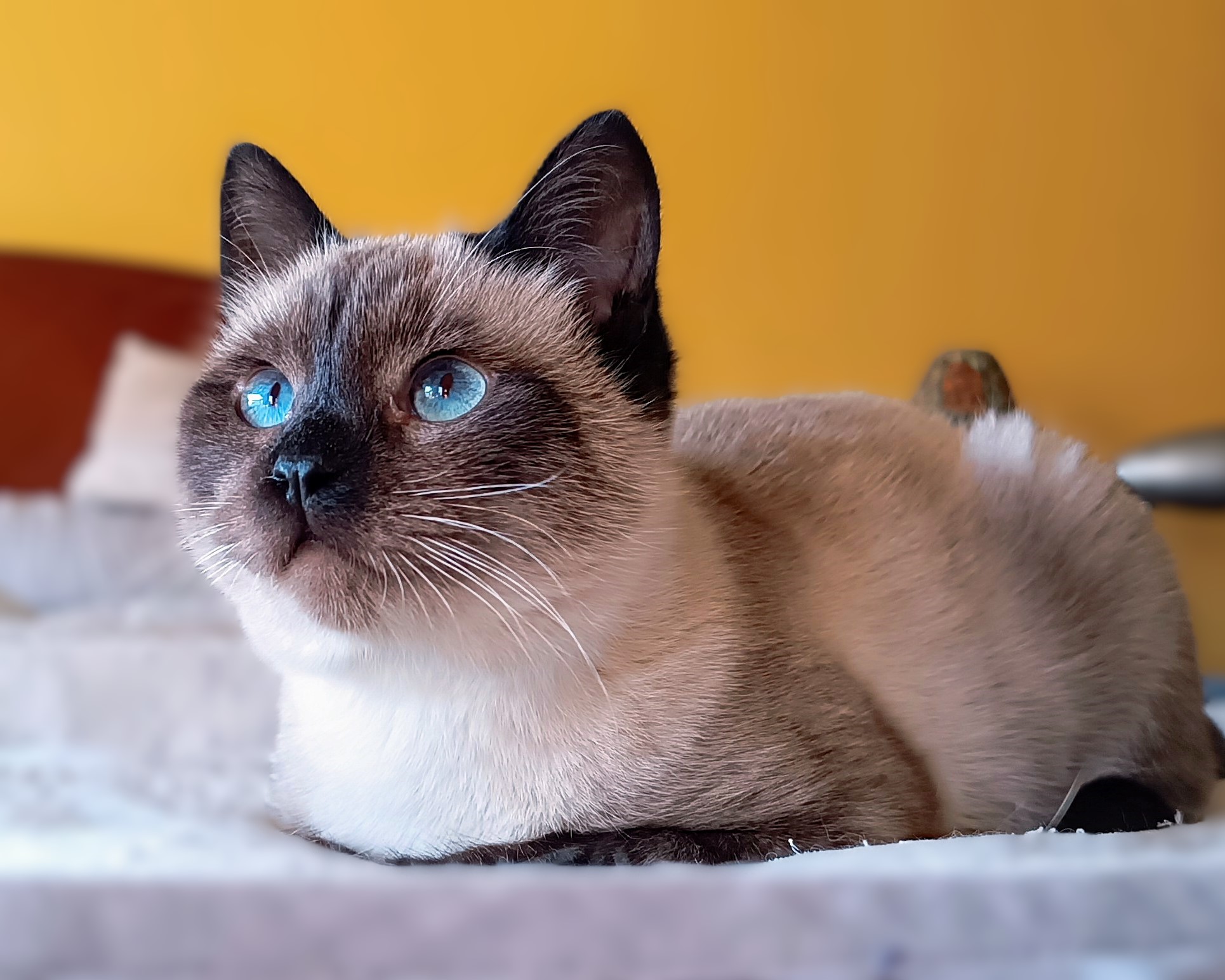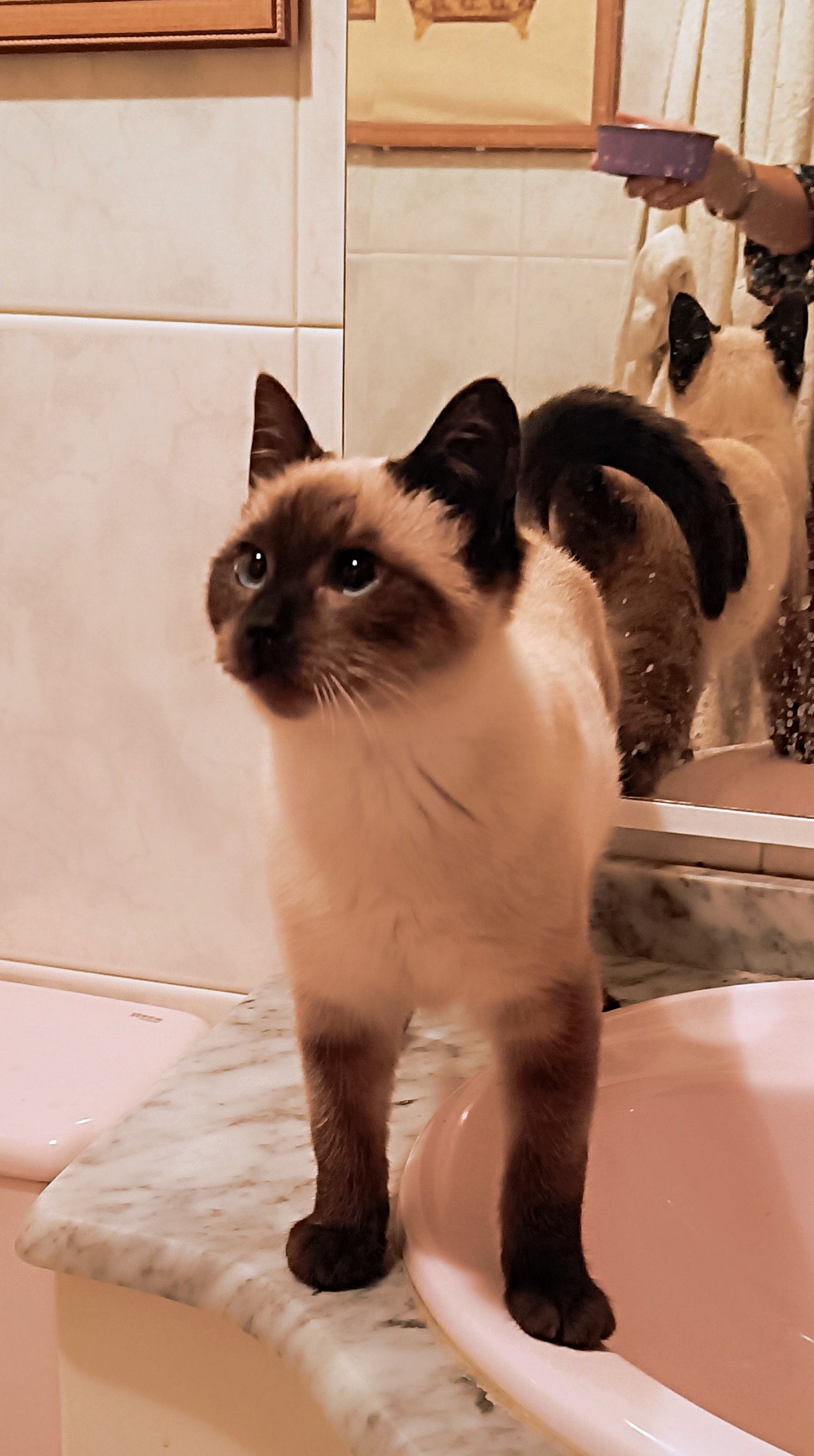 MINIPOM es un siamesito recogido de la calle. Tiene aproximadamente unos 4 meses, pesa 2 kilitos y medio y es un amorcete. Todo lo que quiere es jugar y que le acaricies, ronronea tooooodoooo el rato.