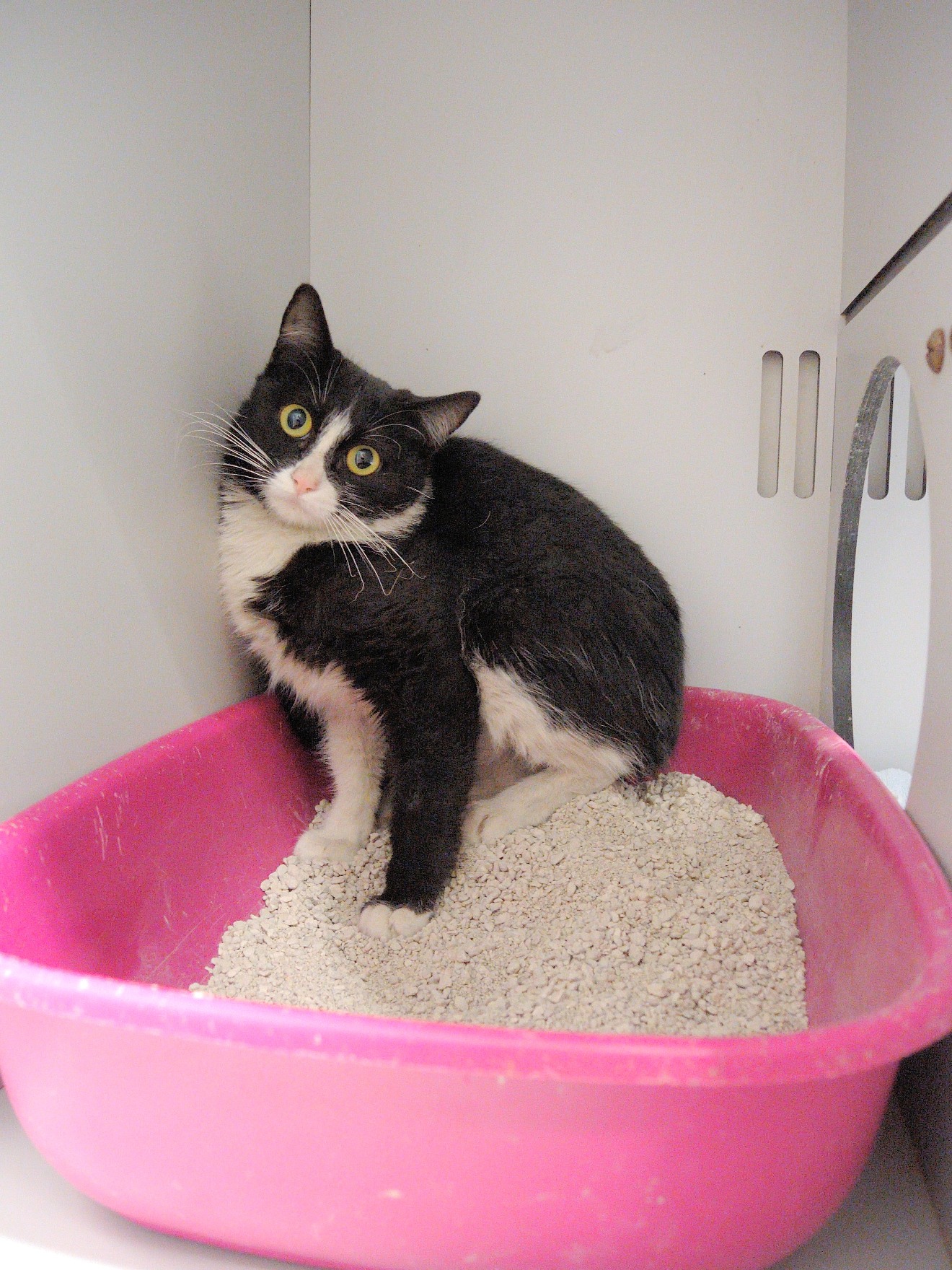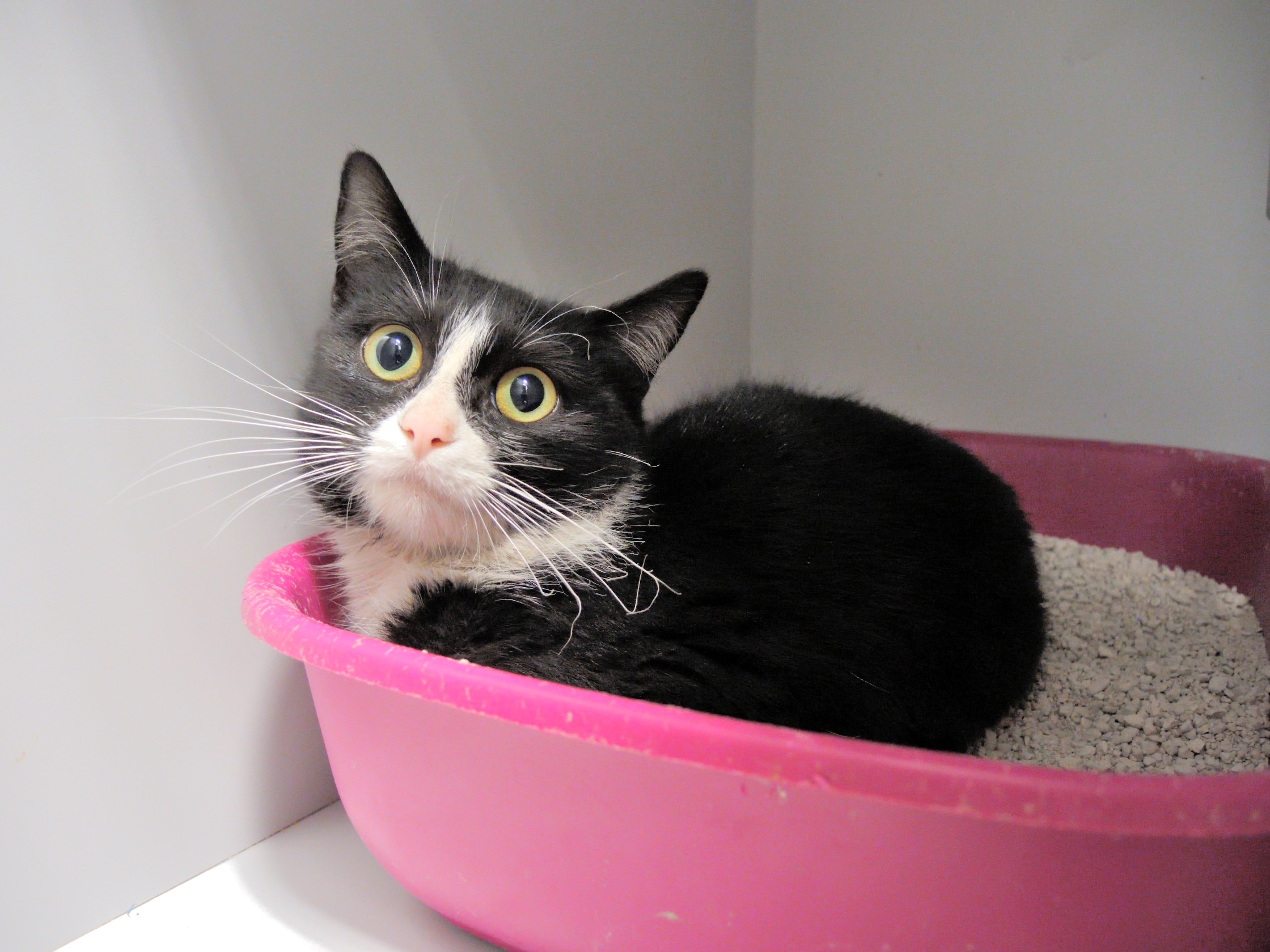 MIRIBILLA es un cachorrin de unos 5 meses. Ha llegado bastante asustado y se refugia en el arenero. Desde allí nos mira con recelo. Es muy txiki y es lógico es el susto que tiene. Con cariño y un poco de tiempo, creemos que se ira relajando.