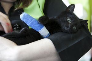 Tiene quemaduras en las almohadillas seguramente producidas por el motor de un coche donde habría entrado buscando cobijo y calor.