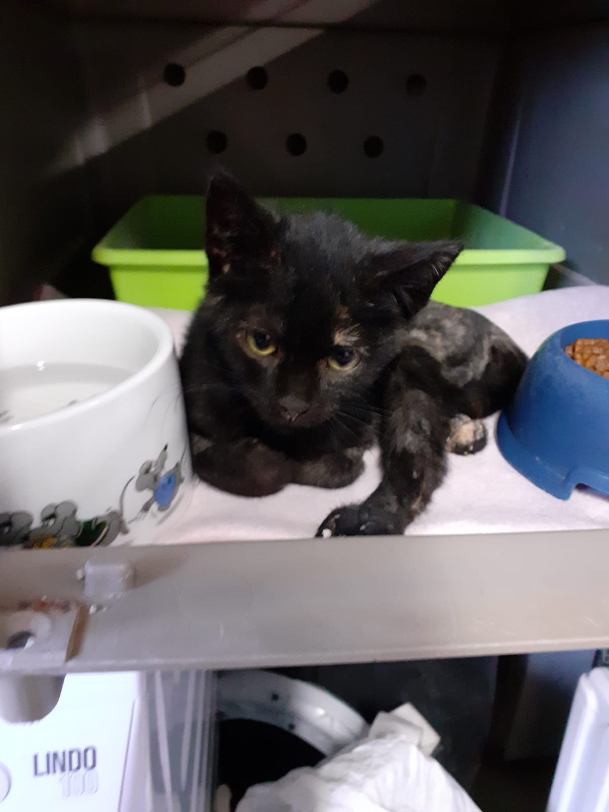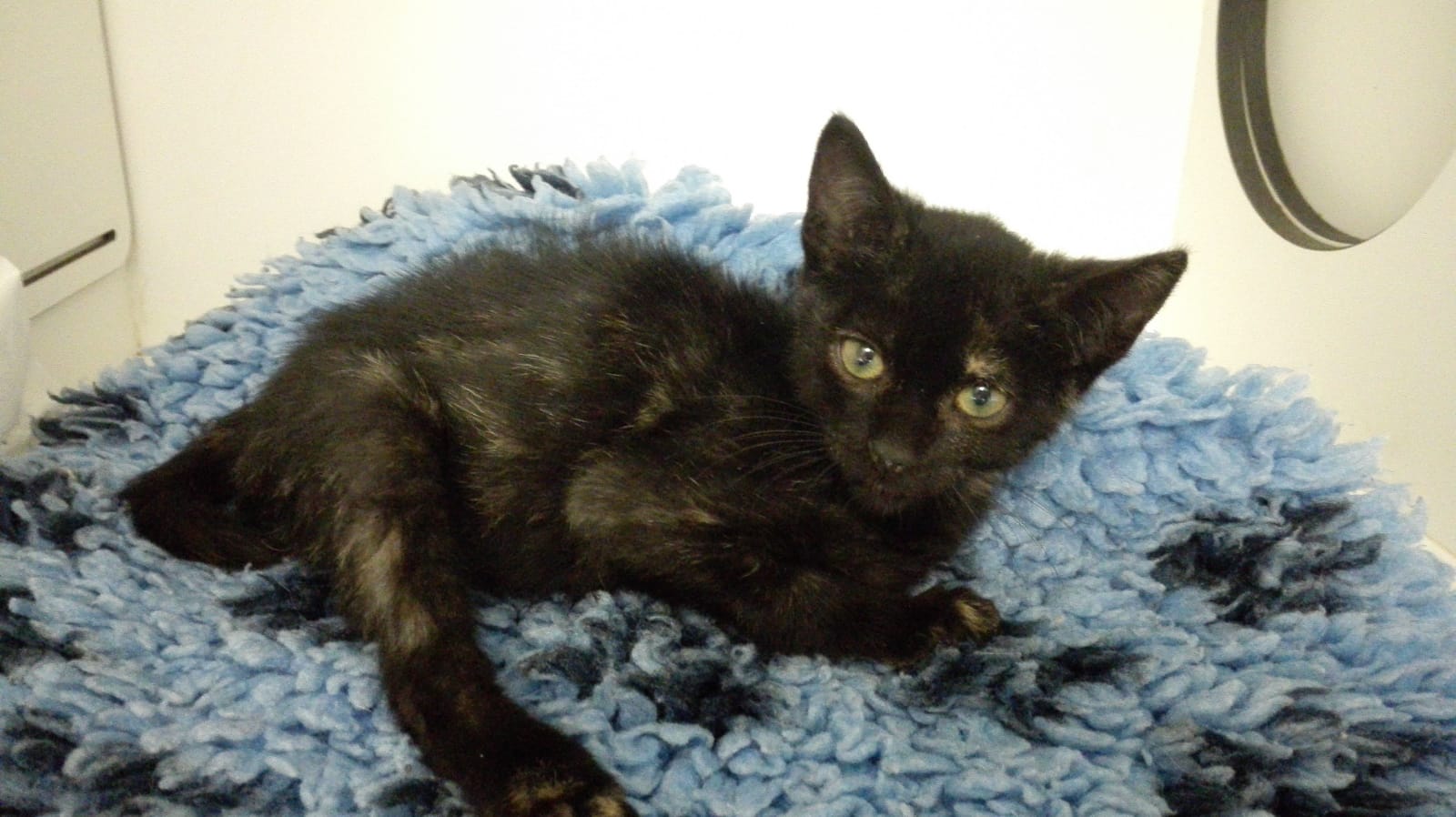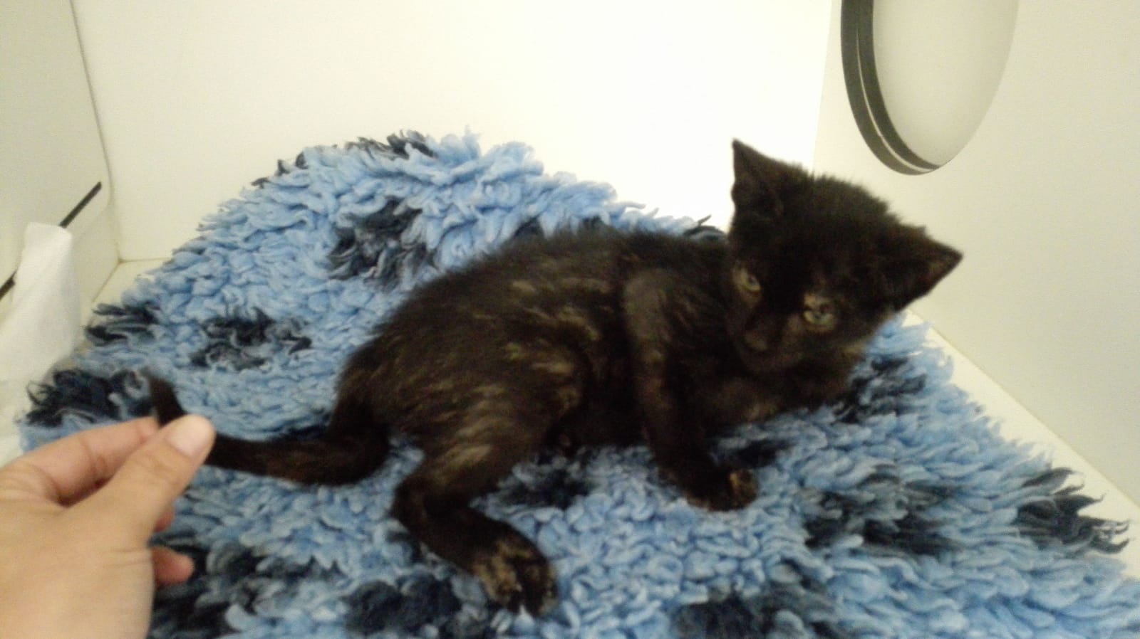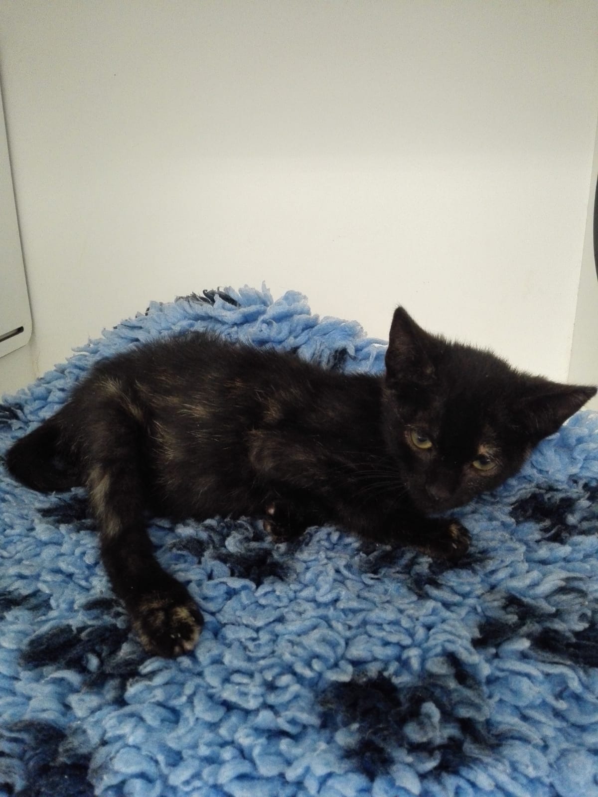 Morticia es esta preciosa bebe que no llega a dos meses que llegaba hace dos semanas arrastrando una de las patitas de atrás. La radiografía mostraba fractura de cadera y habia que operar , No se podía esperar, así que aun siendo tan pequeña arriesgamos. La mala noticia llego durante la cirugía, la cadera que no estaba fractura estaba luxada, y no tiene sensibilidad profunda, de hay que arrastre su patita. El veterinario quiere darle unos días a ver si recupera algo de sensibilidad pero todo indica que esa pata habrá que amputársela ya que por arrastre corre el riesgo de ulcerarse. Ahora mismo esta de reposo absoluto, recuperando fuerzas. Es una bebe tremendamente cariñosa que agradece cada pequeño gesto de atención que la dedicamos. Para poder sufragar todos los gastos de sus operaciones necesitamos padrinos. Si no podeis apadrinarla pero quereis haber una aportacion puntual para ella podeis hacerlo en Caja Rural de NavarraES76 3008 0241 88 2397692928 o KutxabankES63 2095 0360 10 9111588575 o a traves de nuestro PayPal a cuenta familiar o amiga acogidas.felinosbilbao@gmail.com poniendo en concepto «Morticia» Ayuda para esta pequeña!