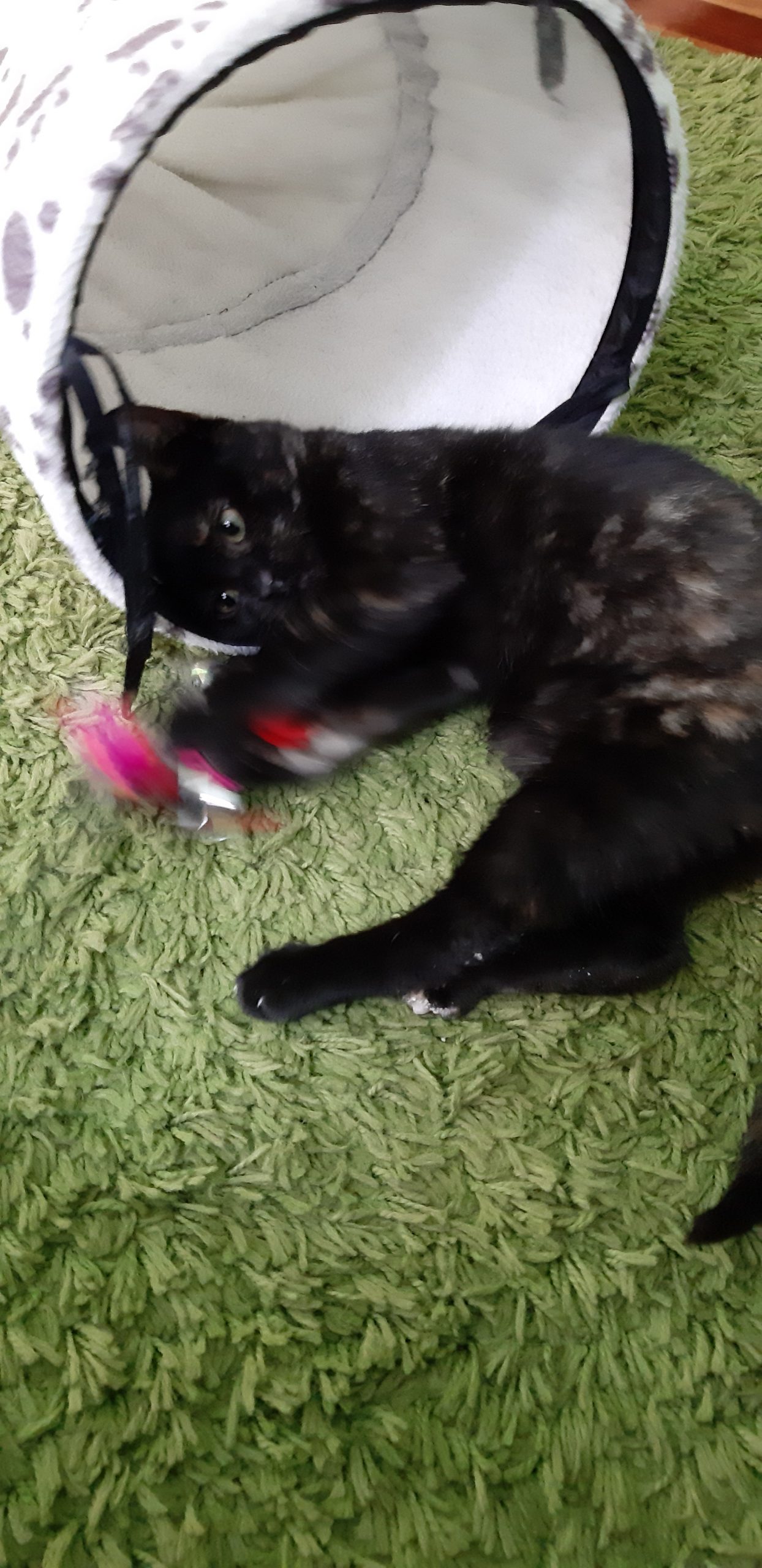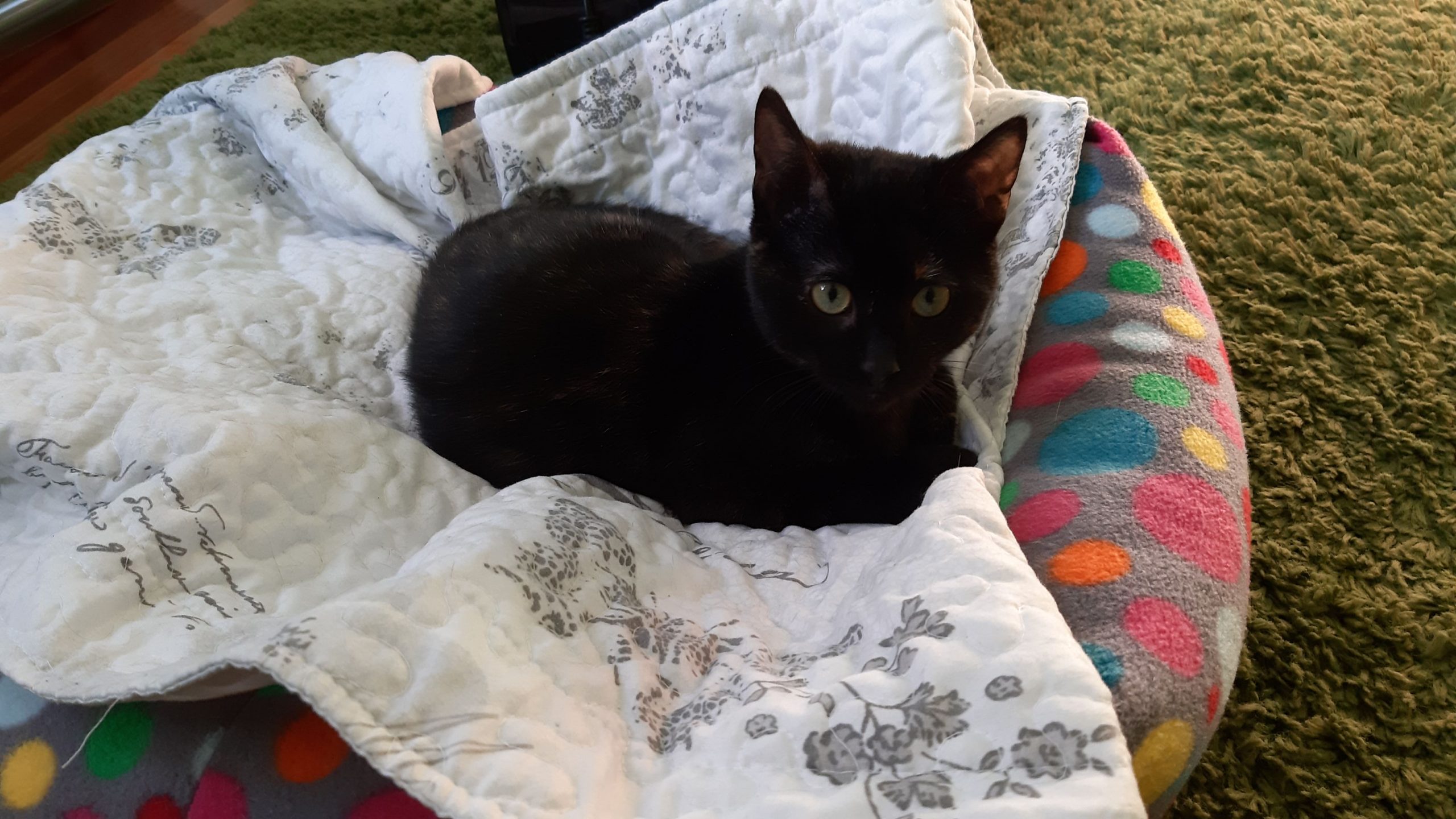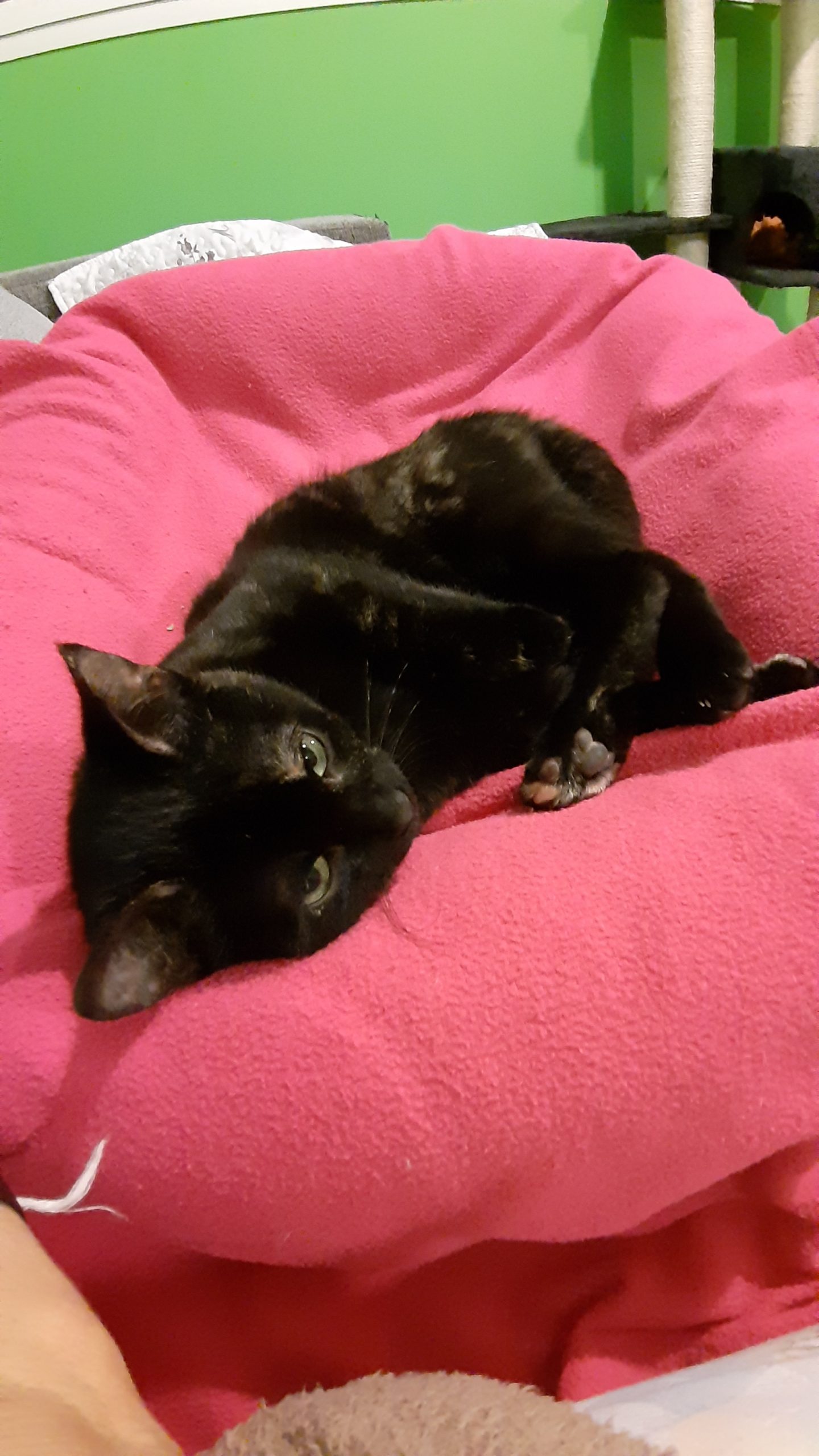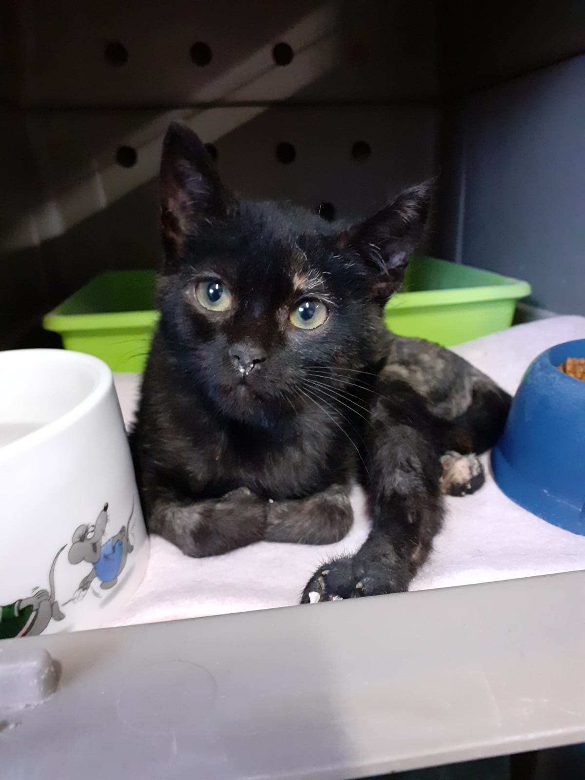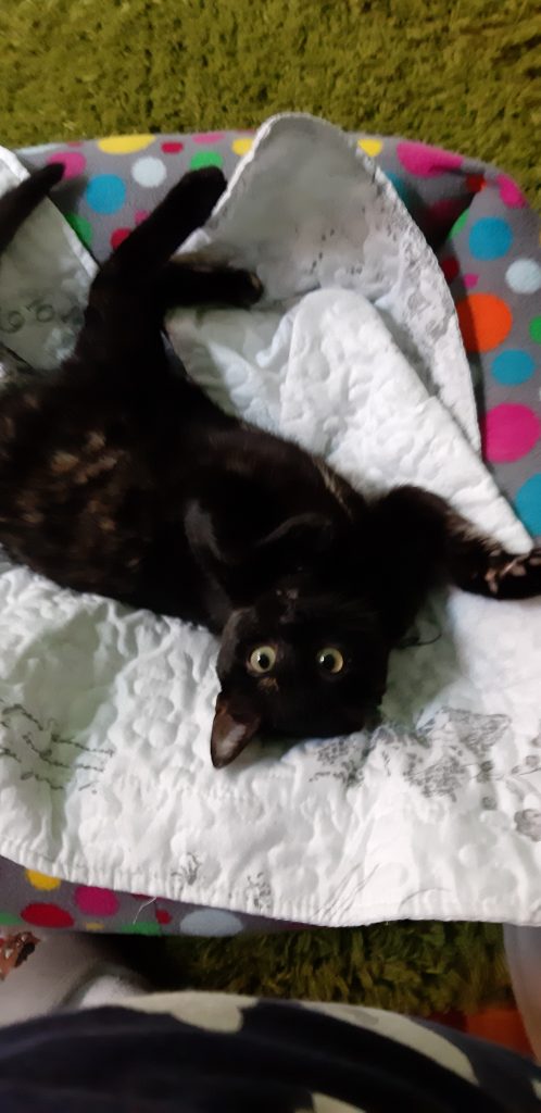 Morticia es esta preciosa bebe que no llega a dos meses que llegaba hace dos semanas arrastrando una de las patitas de atrás. La radiografía mostraba fractura de cadera y habia que operar , No se podía esperar, así que aun siendo tan pequeña arriesgamos. La mala noticia llego durante la cirugía, la cadera que no estaba fractura estaba luxada, y no tiene sensibilidad profunda, de hay que arrastre su patita. El veterinario quiere darle unos días a ver si recupera algo de sensibilidad pero todo indica que esa pata habrá que amputársela ya que por arrastre corre el riesgo de ulcerarse. Ahora mismo esta de reposo absoluto, recuperando fuerzas. Es una bebe tremendamente cariñosa que agradece cada pequeño gesto de atención que la dedicamos. Para poder sufragar todos los gastos de sus operaciones necesitamos padrinos. Si no podeis apadrinarla pero quereis haber una aportacion puntual para ella podeis hacerlo en Caja Rural de NavarraES76 3008 0241 88 2397692928 o KutxabankES63 2095 0360 10 9111588575 o a traves de nuestro PayPal a cuenta familiar o amiga acogidas.felinosbilbao@gmail.com poniendo en concepto «Morticia» Ayuda para esta pequeña!