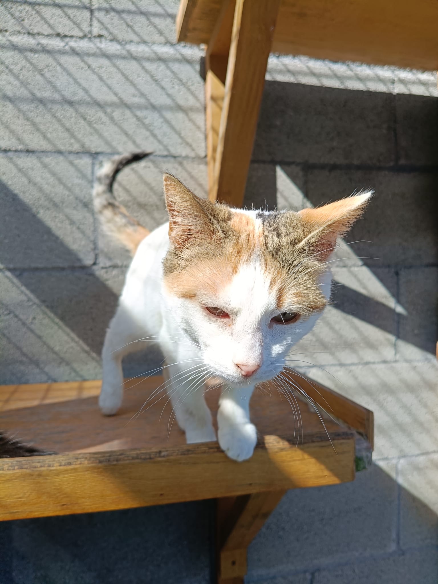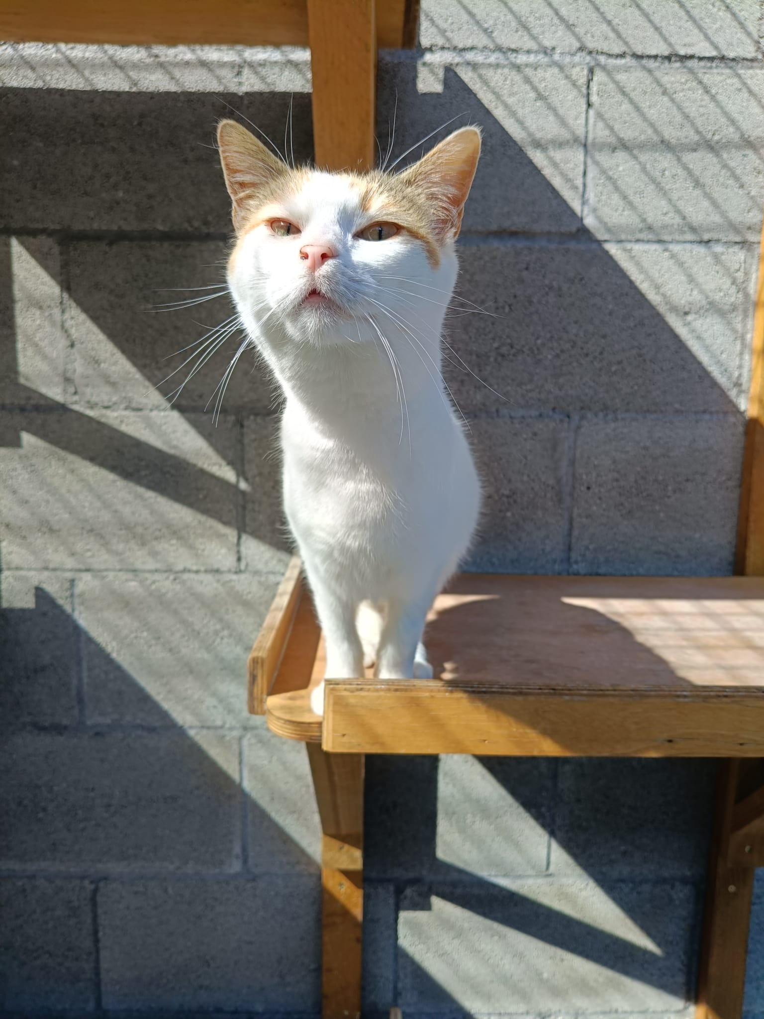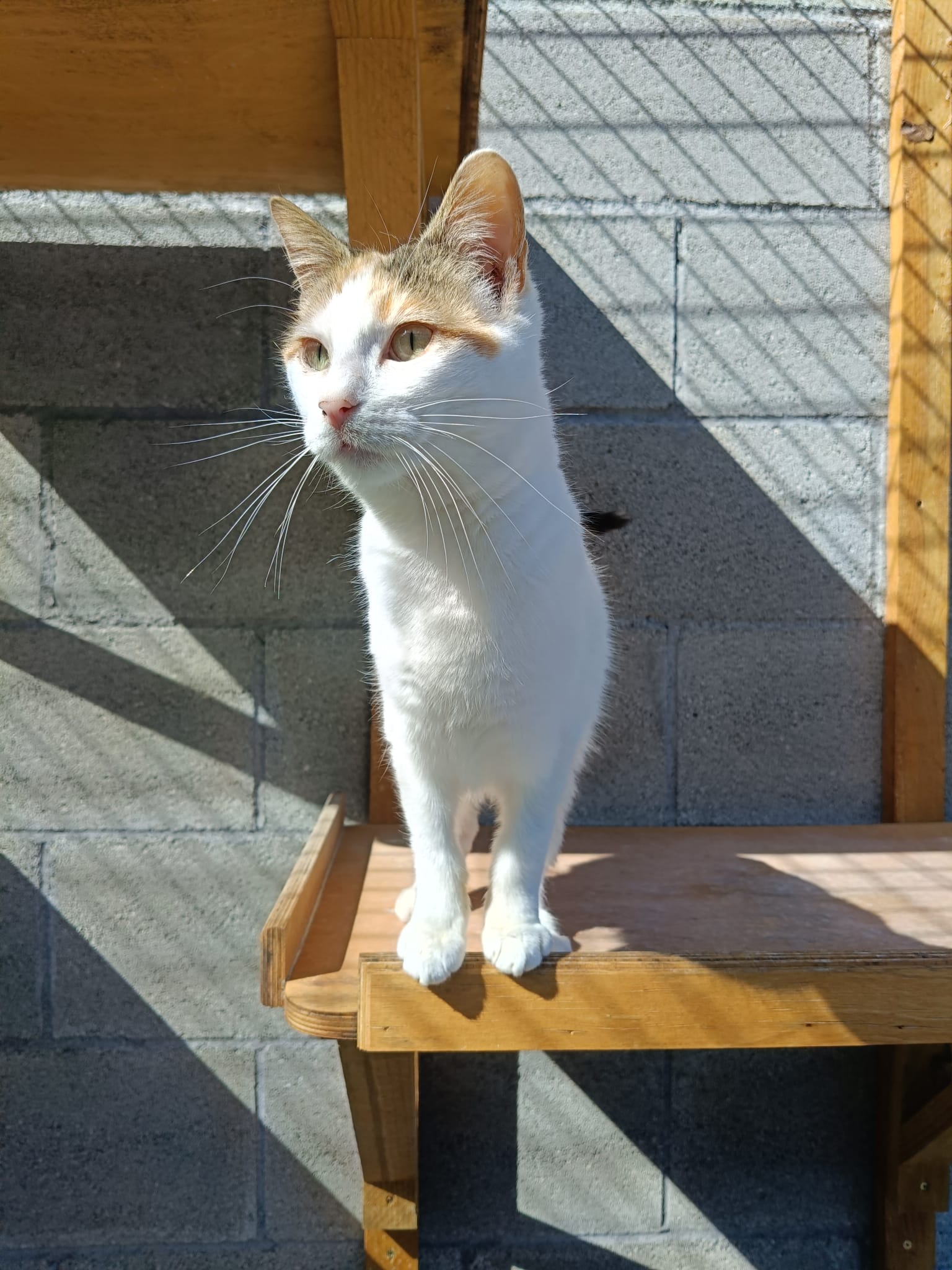 Muñeca es una preciosa gatita blanca con orejas y cola marrón atigradas que hace honor a su nombre: es una verdadera muñeca. Llegó a la perrera embarazada, y pocos días después dio a luz a sus cachorritos, quienes fueron adoptados rápidamente. Ella, aún espera su oportunidad. Es una gata joven, muy cariñosa y sociable. Siempre es la primera en venir a saludarnos cuando nos acercamos, buscando mimos y compañía. Le encanta estar cerca de las personas y se adapta con facilidad a nuevos entornos. Muñeca se merece un hogar donde la quieran tanto como ella quiere a los demás. Si estás buscando una compañera fiel, dulce y llena de amor, ella es la indicada.