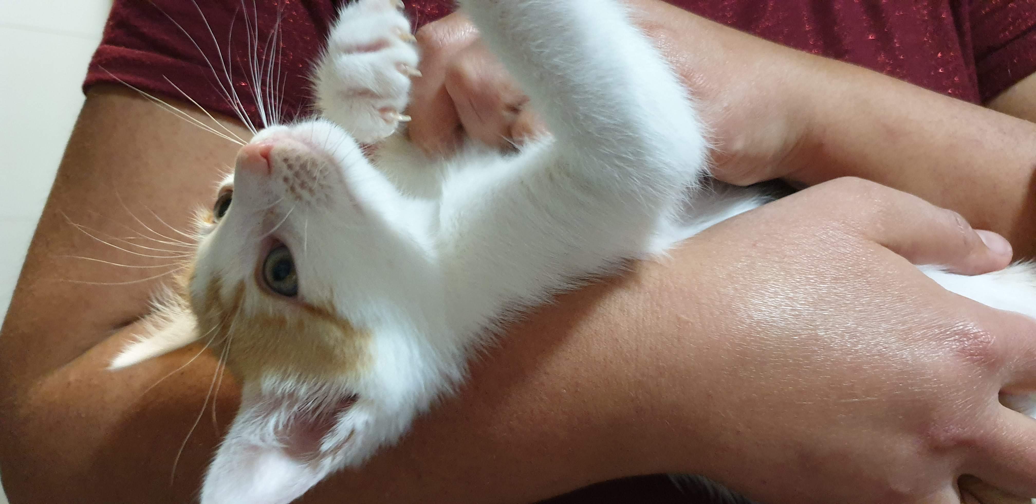 Según le coges, se gira para que le rasquen en la tripa, es su punto débil, puede estar muuuucho tiempo ronroneando, disfrutando de su relax.