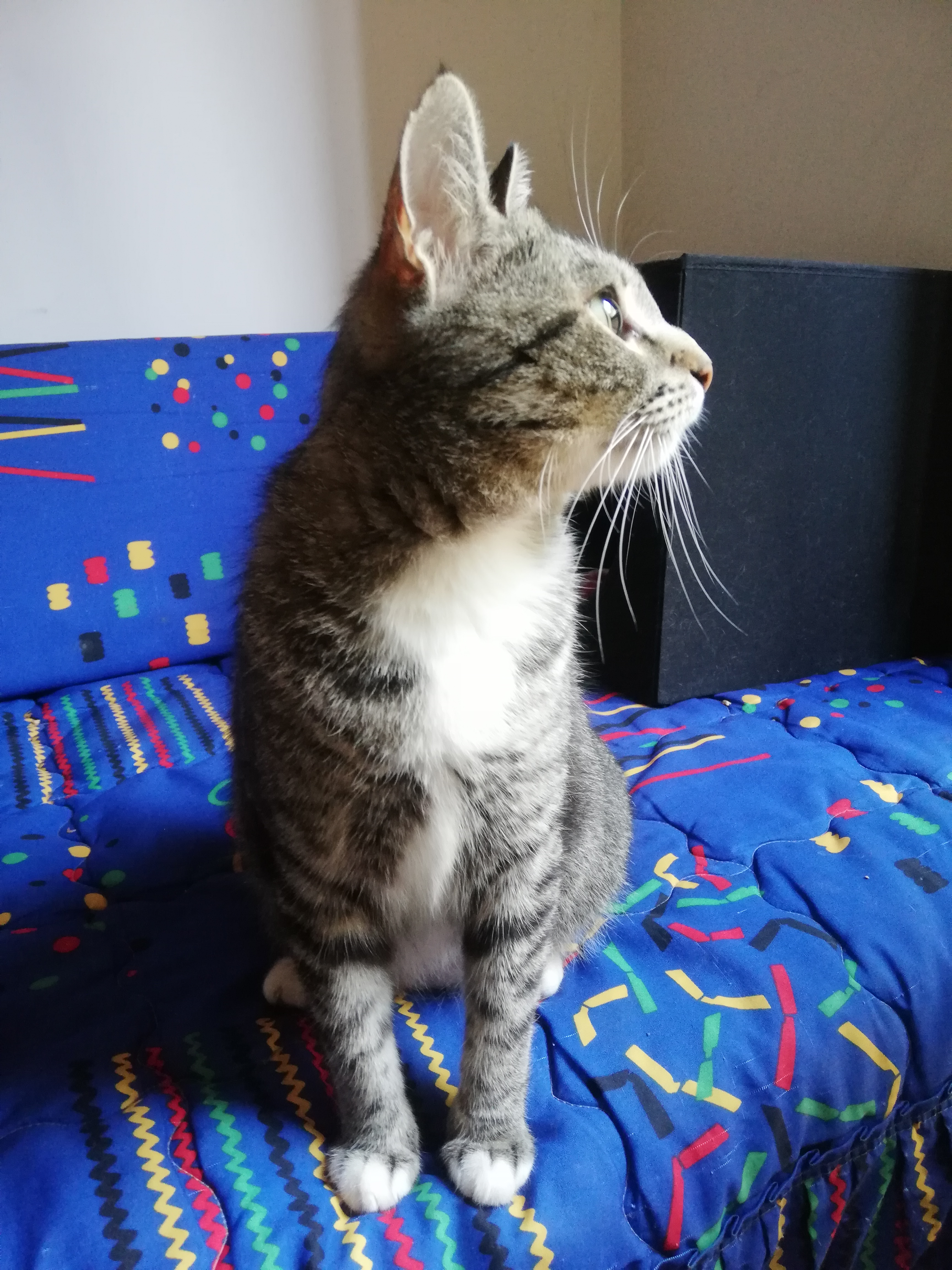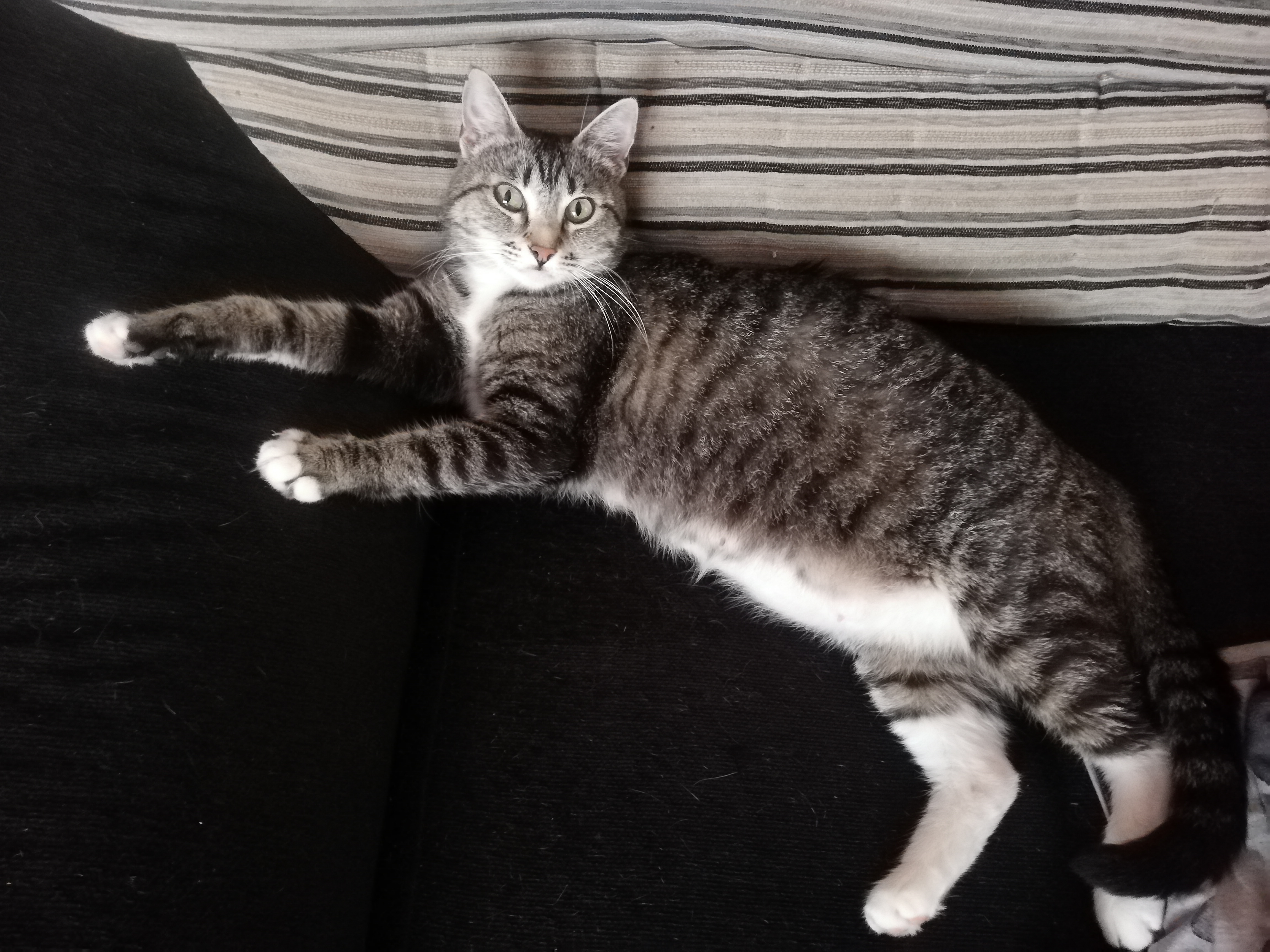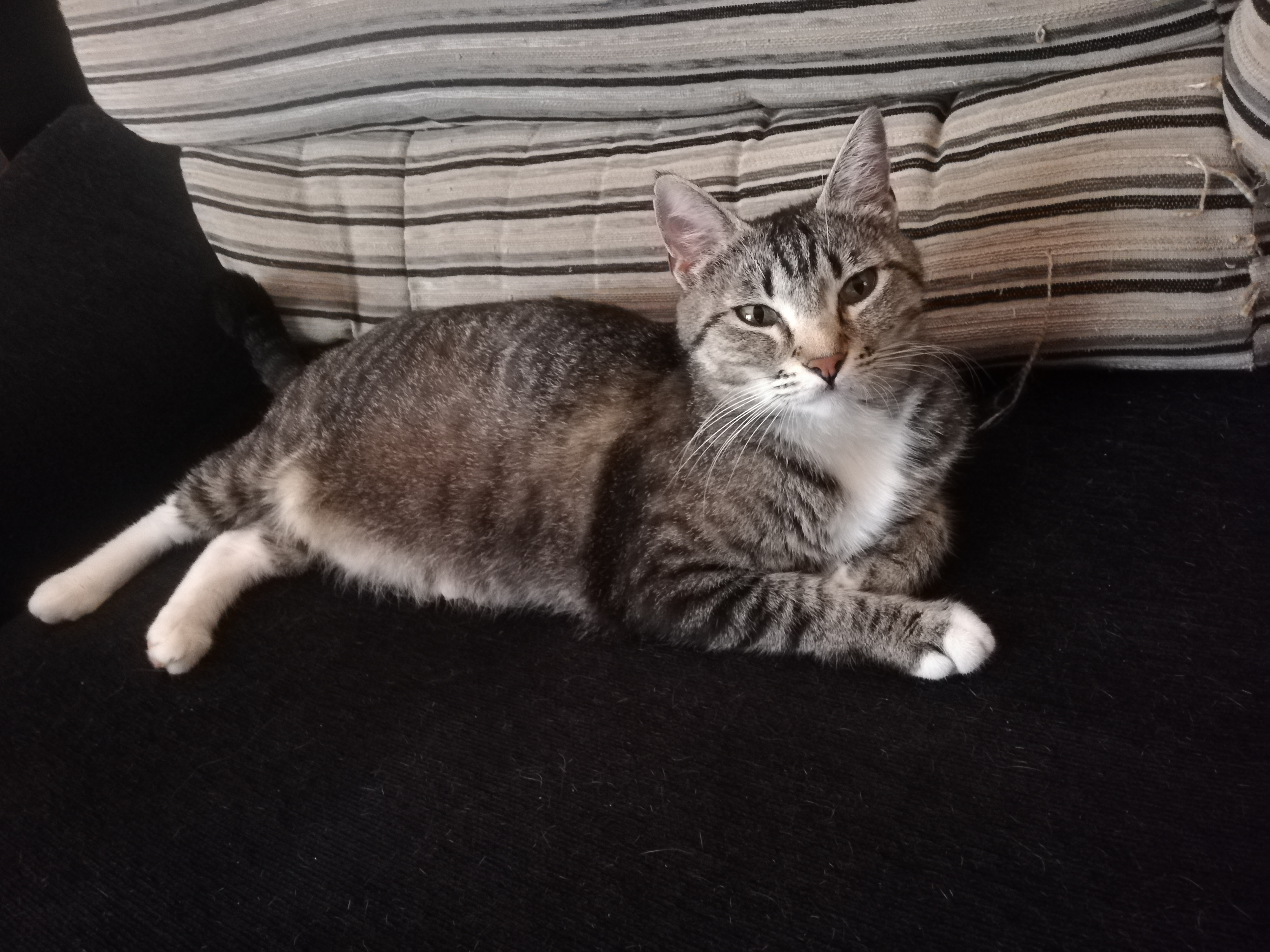 Es una gata muy buena y cariñosa. Nada miedosa aunque no te conozca. Le gusta jugar con pelotitas.