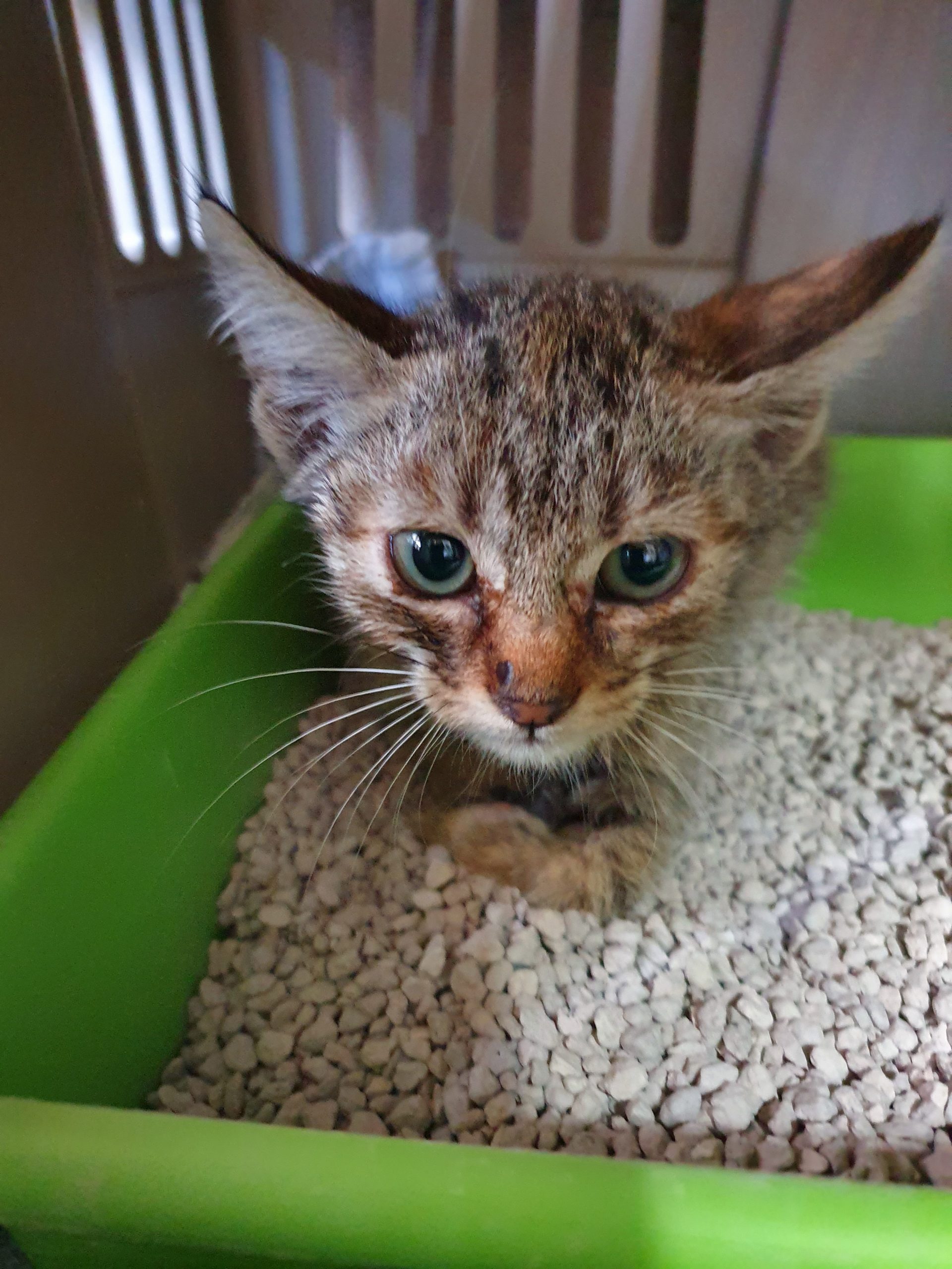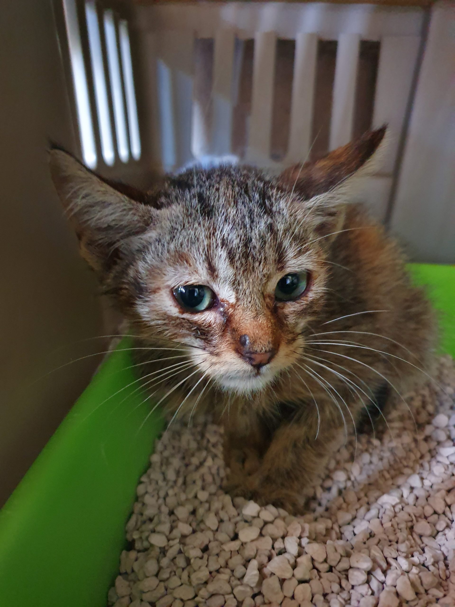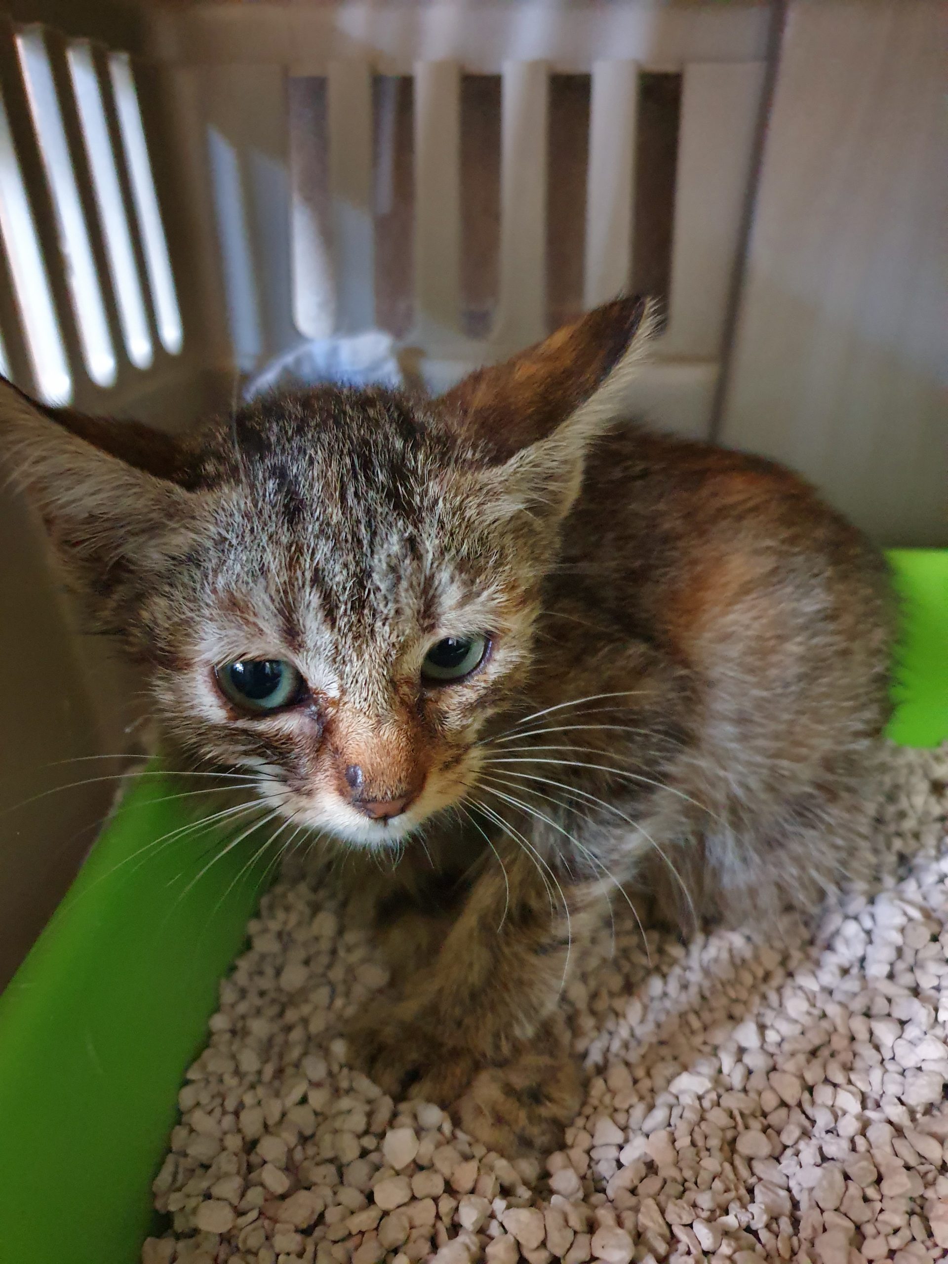 Nairobi llegaba a nosotras hace unos días y lo hacia con cuadro respiratorio del que ya se ha recuperado 🙂 . Como particularidad destacamos que tiene el rabo torcido de nacimiento ¡¡ a ella no la molesta nada!! . Es una gata majisima que busca adoptante definitivo. ¡¡Animaos a preguntar por ella!!