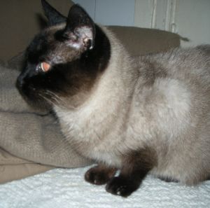 No se le puede hacer una exploración «normal» ya que normalmente se hace por los ojos y los oídos…y a día de hoy no son operativos. Pero a base de observarla…tiene determinados tics y manías que ya he visto en otros gatitos con afecciones parecidas.