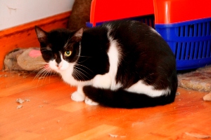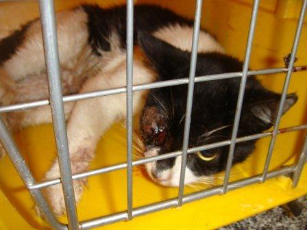 NIKI nos ha llegado hoy en estas condiciones…Aún no sabemos si es macho, hembra, su carácter…Lo que sí sabemos es que ese ojo necesita cuidados veterinarios urgentemente.