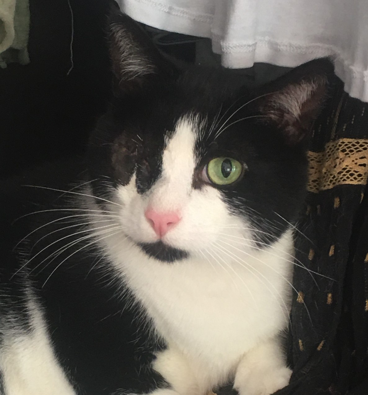 Nikito es muy bueno y muy confiado. Es un gato muy tranquilo que se lleva bien con sus compis gatunos. No tiene problemas con el resto y le gustar estar tumbado junto a otros gatos. Se le ha localizado un problema en uno de sus ojos por lo que le llevaremos al veterinario para confirmar que es lo que le pasa