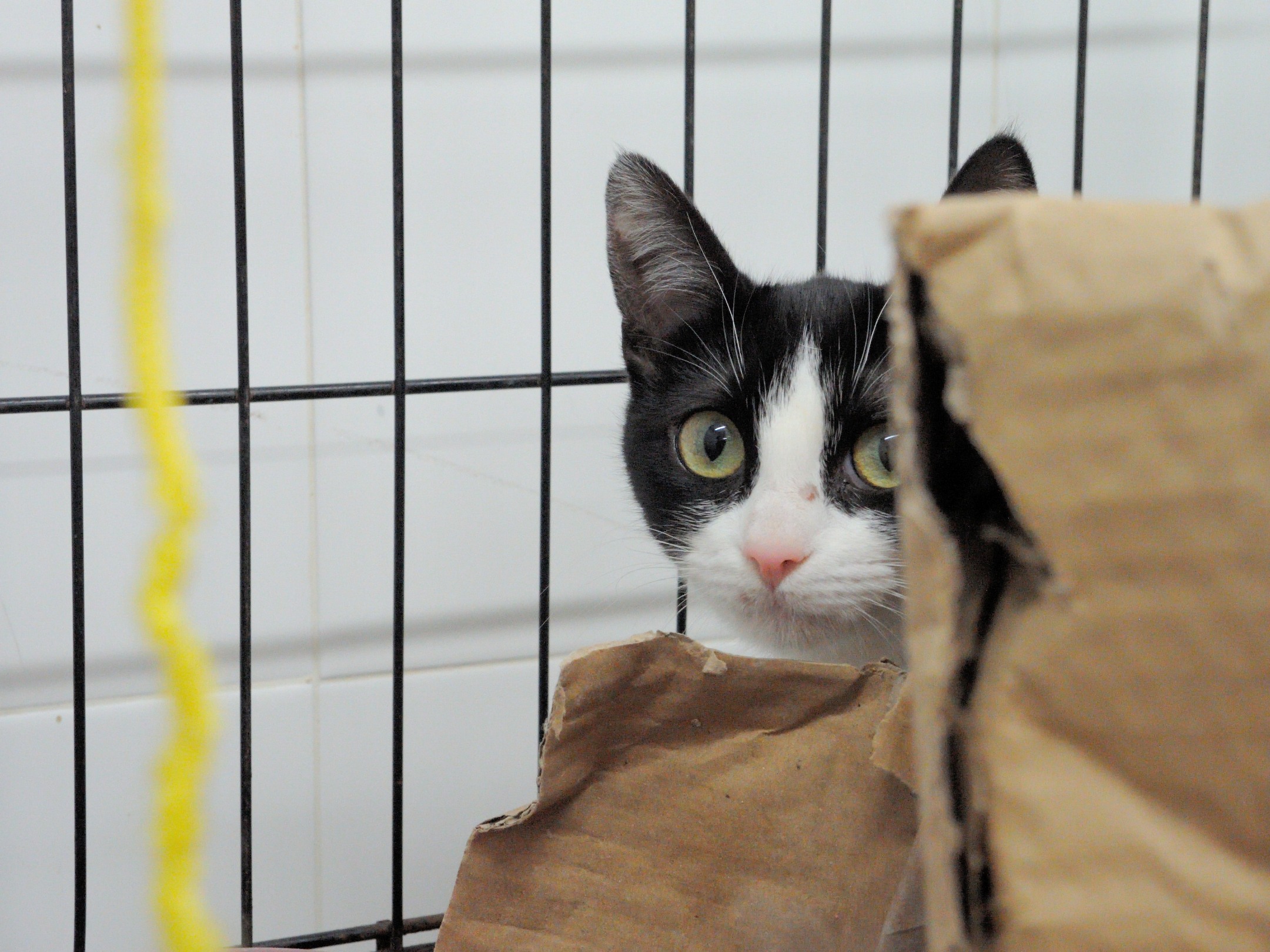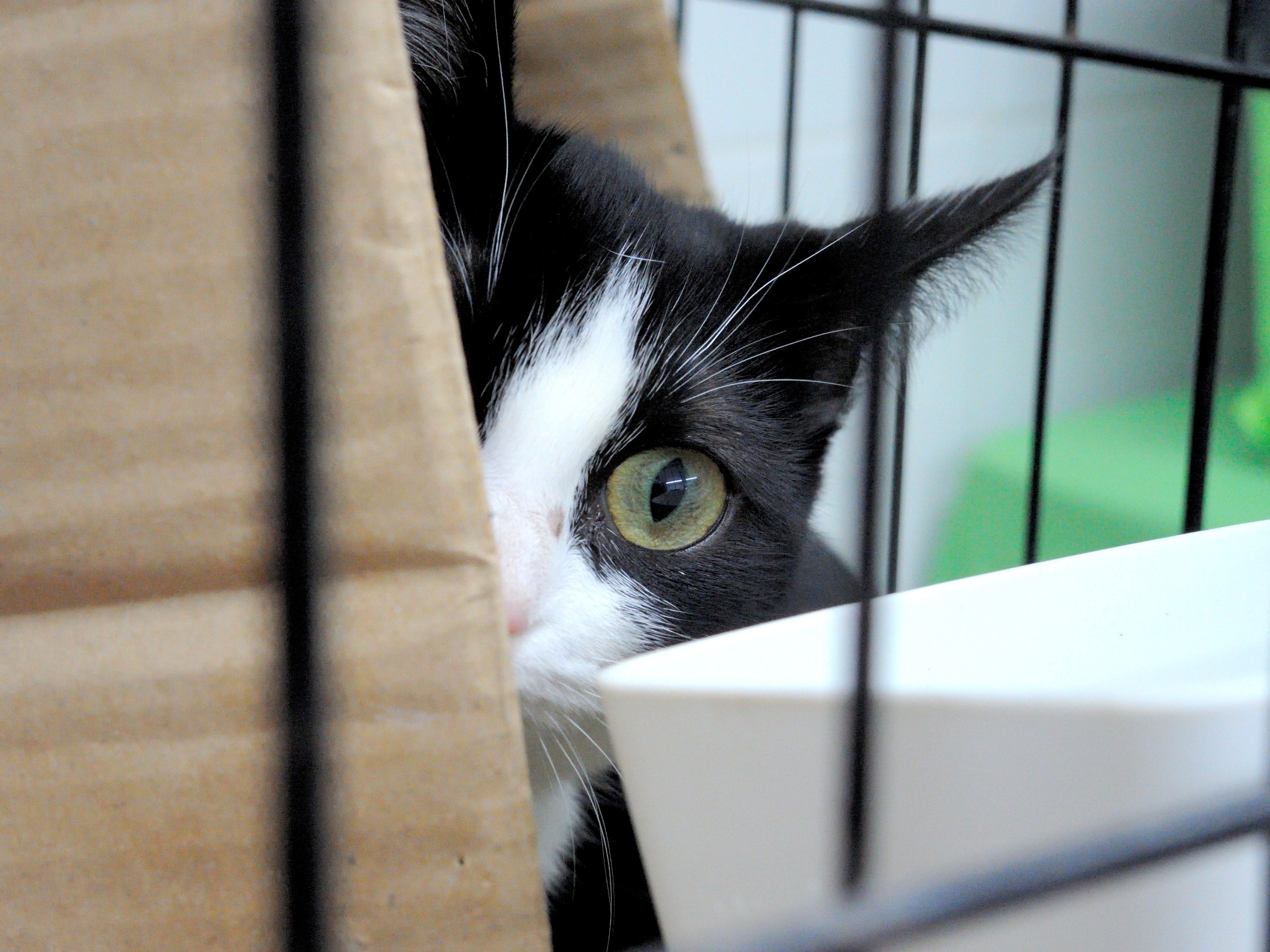 Noa tiene ahora alrededor de 6 meses. No es nada sociable pero ya maulla y acepta la comida que se le da a través de los barrotes.¡¡Pequeños grandes avances!