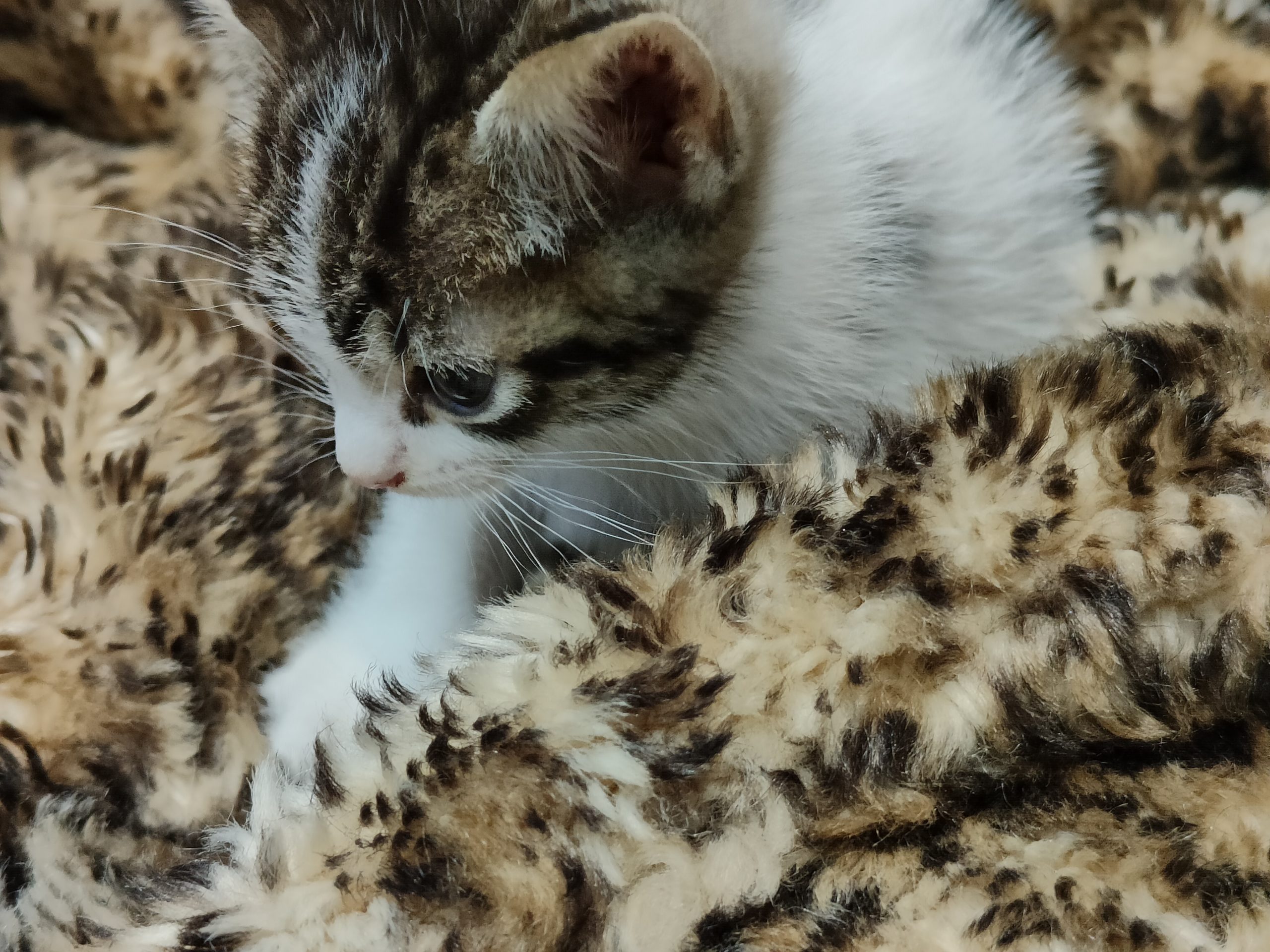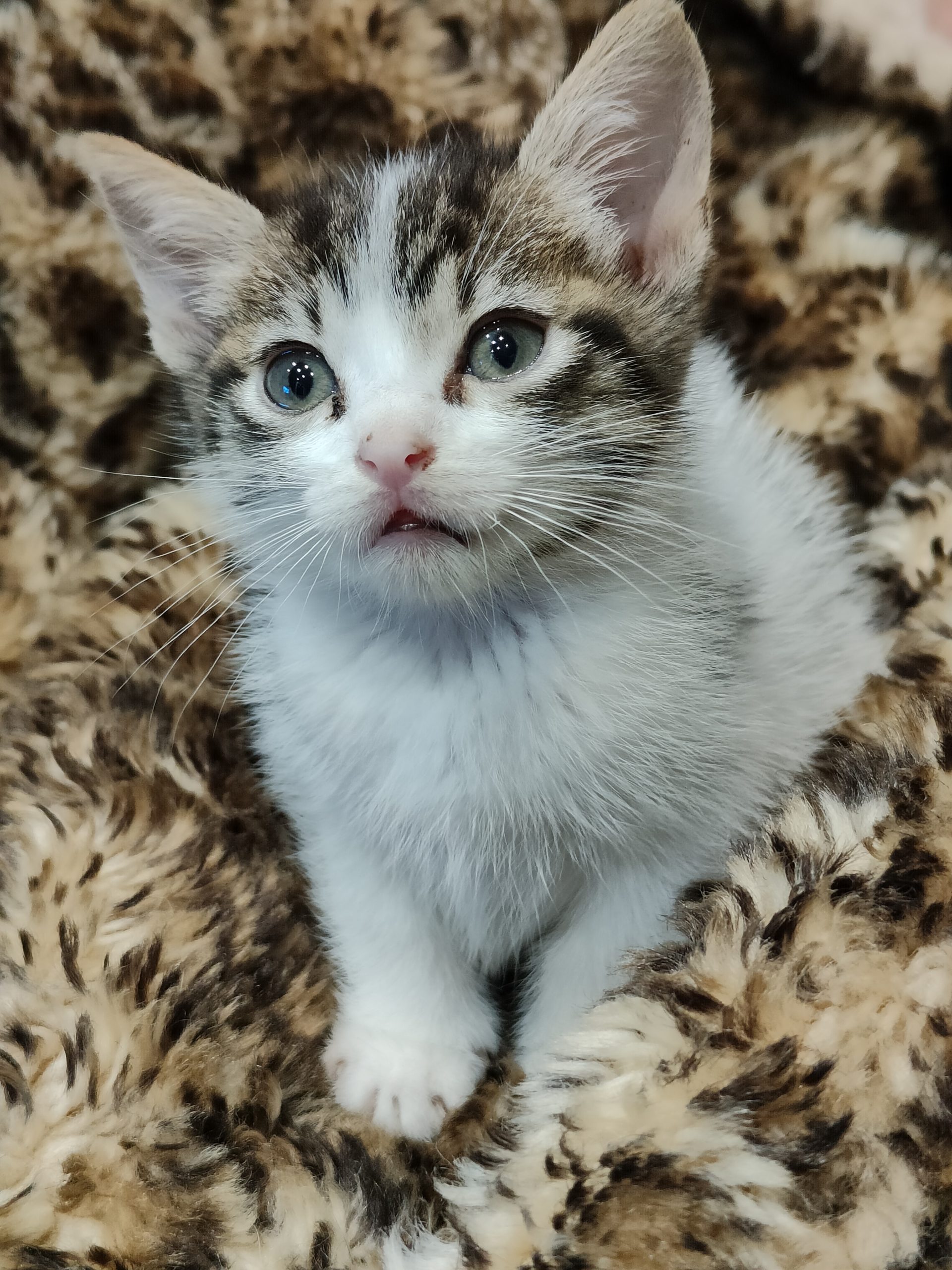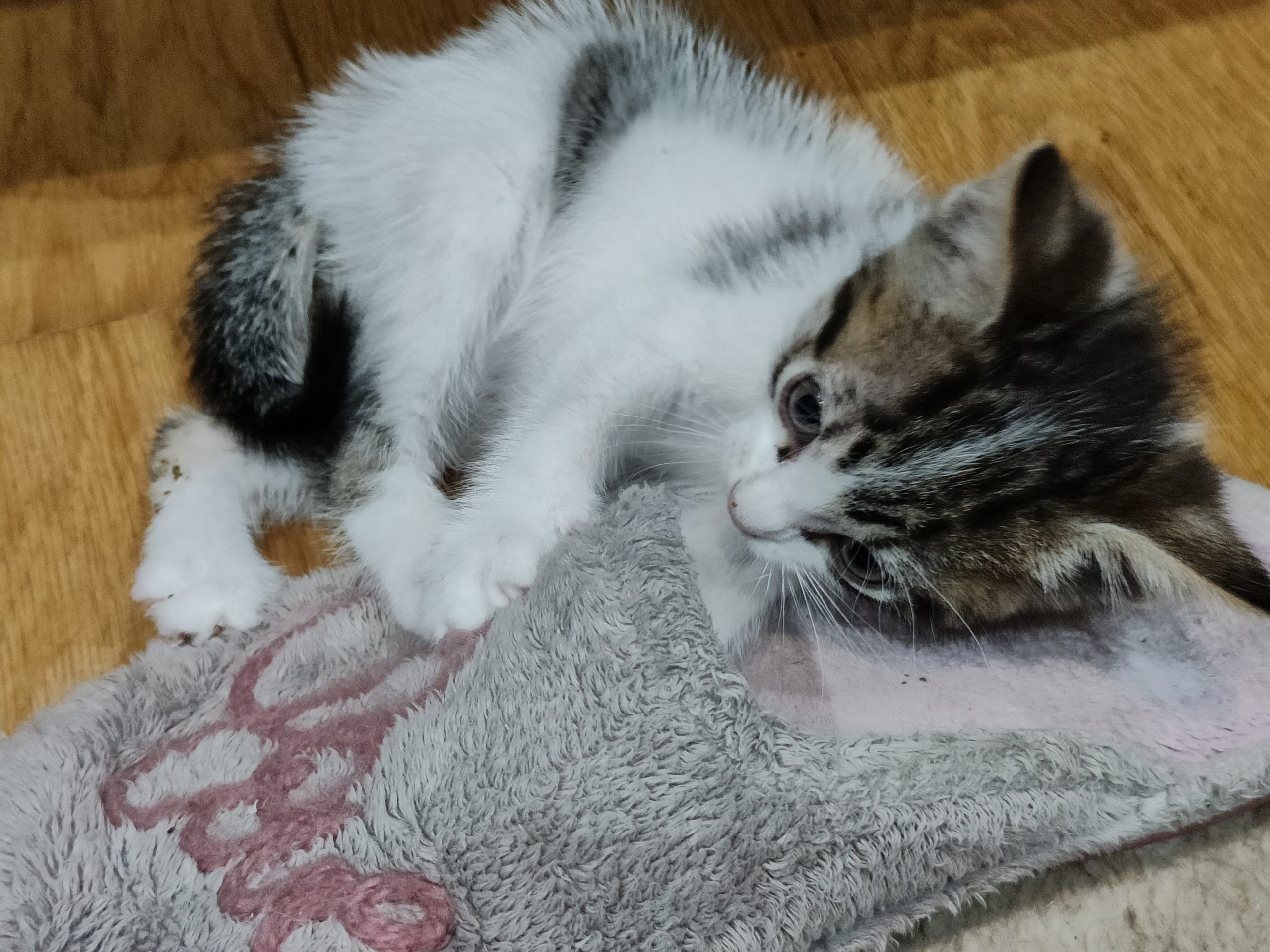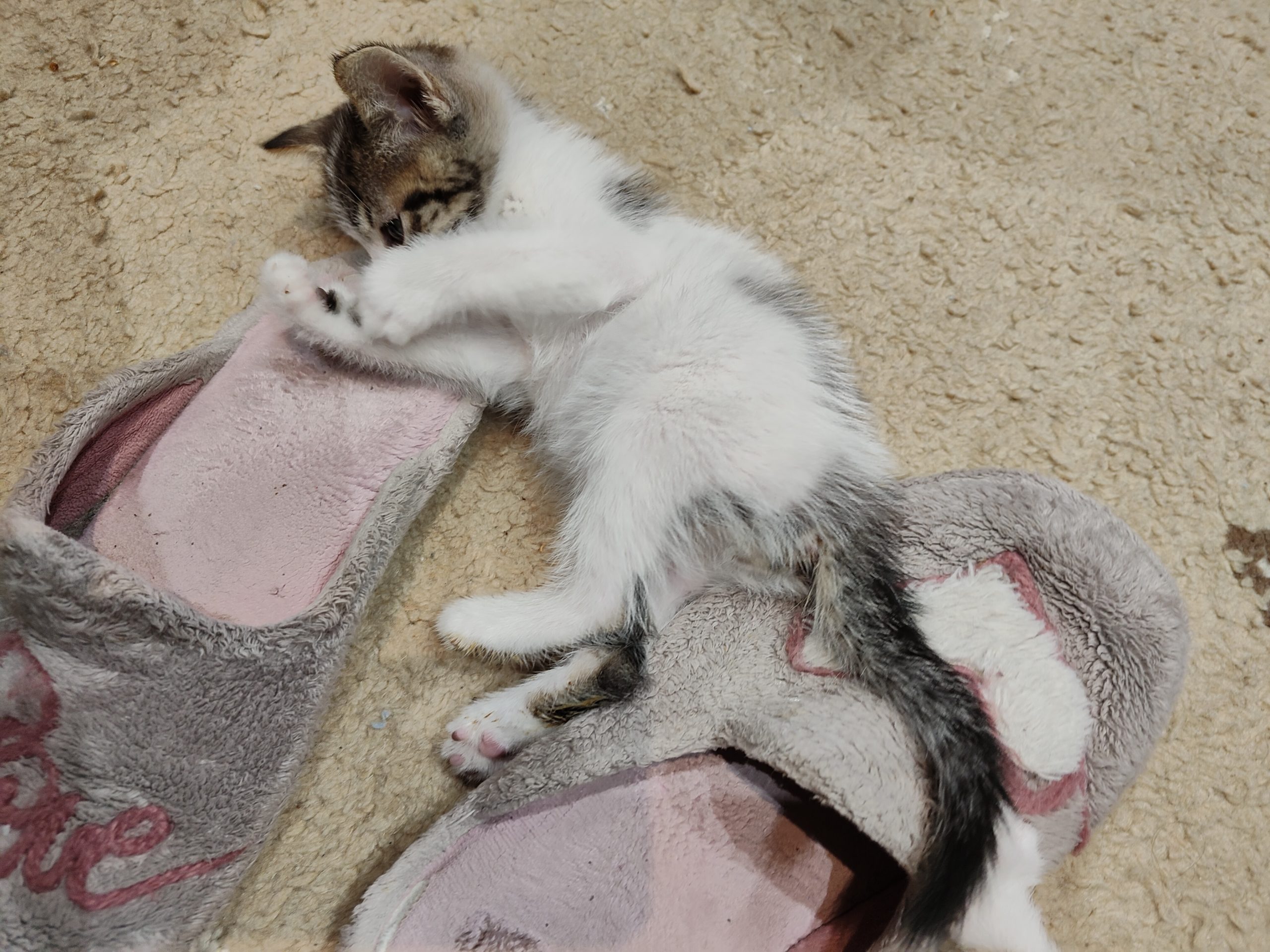 NOBI llegó muy chiquitin pero poco a poco va cogiendo peso. Es el más pequeño de la camada, una bolita preciosa. Ronronea y se duerme amasando la manta, y maulla para que le hagan caso. Come pienso y utiliza el arenero perfectamente.