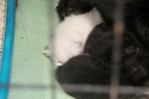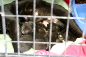 Por fin hemos podido hacer alguna foto de Ofelia y su pequeña familia…son 4 negritos y uno que de momento es totalmente blanco