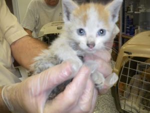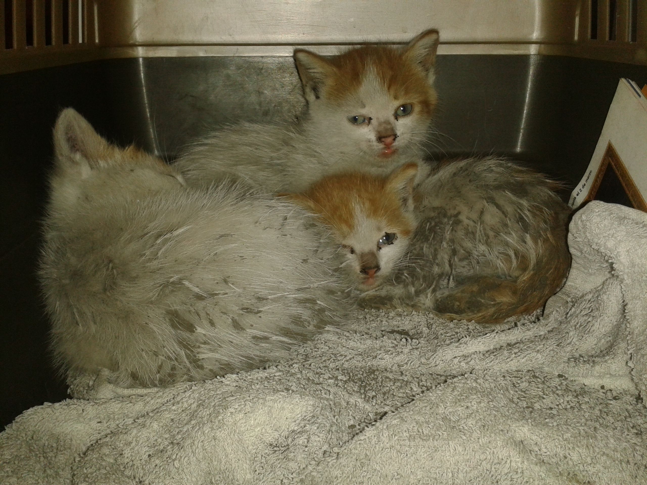 Los tres estaban de porquería hasta arriba… ya os podéis imaginar de qué tipo metidos en una alcantarilla, así que fueron bañados para evitar intoxicaciones… las fotos de antes y después son impresionantes, no parecen ni los mismos gatitos.