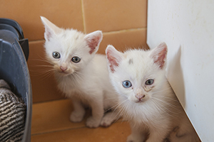 Son todas blancas, con alguna mota en la cabeza que nos permite diferenciarlas. Agua es la mas peque de la camada, pesa 250 grs y es la mas cariñosa, en breve estará guapísima. Es un poco imposible sacarla fotos porque enseguida viene a por mimos. Las 5 buscan un hogar.
