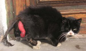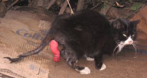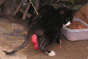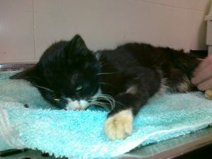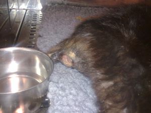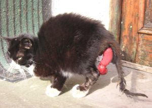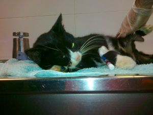 Además, el extremo de intestino empieza a tener peor pinta y lo que más nos ha preocupado y que ayer apenas se notaba; el rabo de Pablito no está bien, está como acartonado y cuando se le limpia se queja mucho… cosa que no hace al limpiarle lo demás, de hecho hasta ronronea el angelito. Así que ahora mismo está en el vete y esperamos a ver qué nos dice porque igual hay que intervenir antes de lo esperado.
