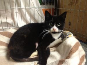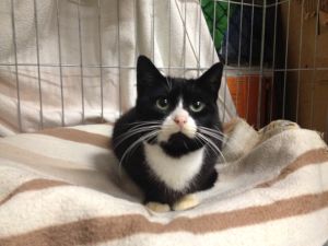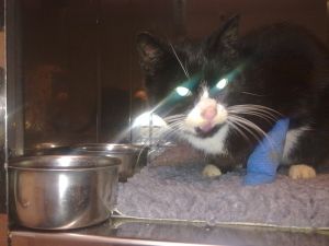 Los primeros días los pudo pasar acogido pero desgraciadamente luego tuvo que ir a una jaula donde las compañeras le han estado atendiendo y cuidando.