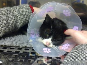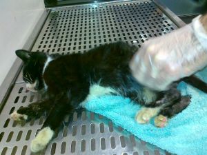 No ha quedado ingresado ya que de momento hay que desparasitarlo y quitarle todo lo que lleva encima para que luego no le complique la recuperación de la cirugía. Tiene cita el lunes en el vete, no se le operará el mismo día porque habrá que valorar…de momento ya nos ha dicho que lo más seguro es que ese trozo no pueda salvarse.