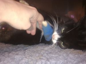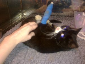 El peque es un verdadero amor, solo lo pasa un poco mal con una de las medicinas, pero no pone ningún impedimento a que se le de… incluso luego es de esos mimosones que además de refrotarse y ronronear… hace el caballito pidiendo aún más mimos.