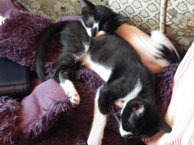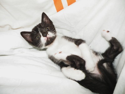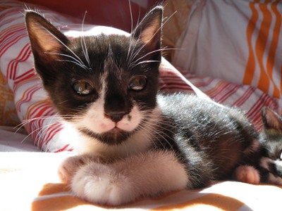 Pantxo, es hermano de Laia y Pintto. Hay una historia cuando menos anecdótica detras de ellos. Su madre entro por la ventana de una casa y tuvo allí sus 5 cachorros. Al día siguiente volvió y se llevo dos, dejando a Laia, Pintto y Pantxo al cuidado de la chica que vivía en la casa. Han sido criados a biberón y por otra gata que tuvo cachorros por las mismas fechas. Nacieron el 11 de Abril y están así de guapos.