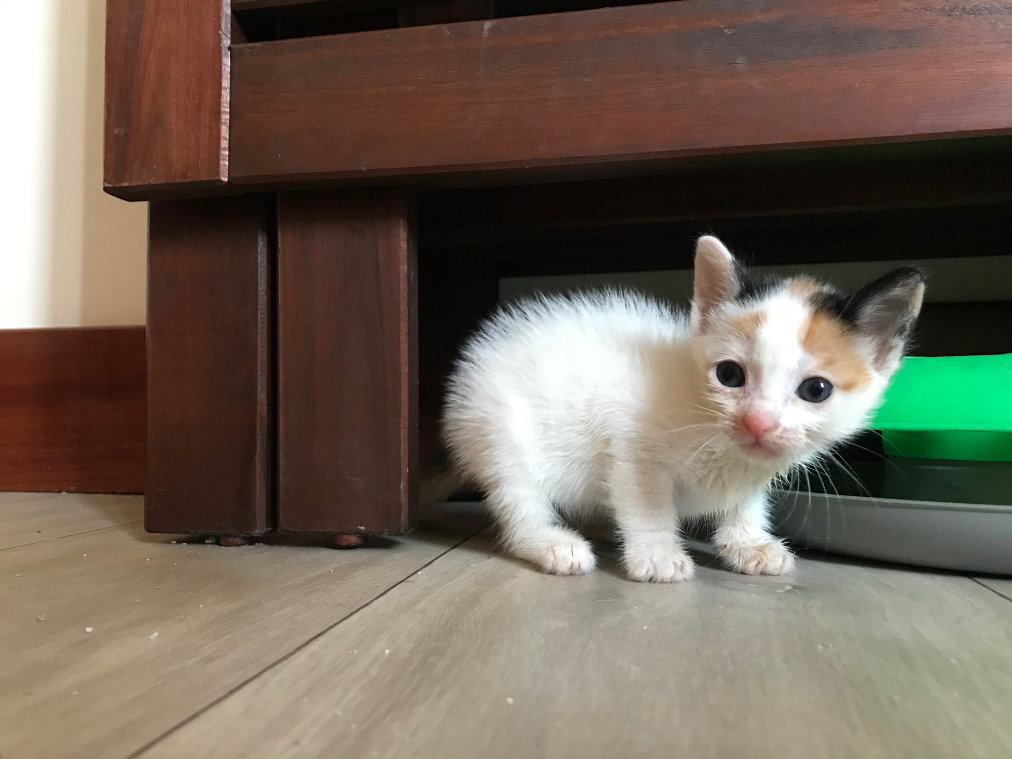 Pente es esta preciosa bebe de tan solo 400 gramos que aparecio en la via publica. Rapidamente conseguimos acogida para ella donde se observo que presentaba un poquito de cojera. El veterinario no vio nada raro en la radiografia asi que reposo y que crezca:). Poco a poco ha ido mejorando.