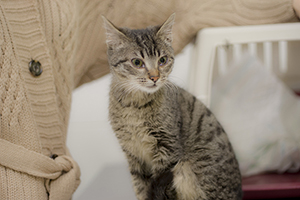 Peter es un gato de unos 4 o 5 meses de edad, esta muy delgado y tiene un cuadro respiratorio muy fuerte. Le lloran los ojos un montón, le estamos tratando, pero necesita aparte del tratamiento una casa calentita donde se ocupen de él…el pobre ahora esta en una jaula y se hace una bolita, solo come lata de momento, posiblemente el pienso ni lo huela y tenga malestar. Necesitamos ayuda para esta angelito