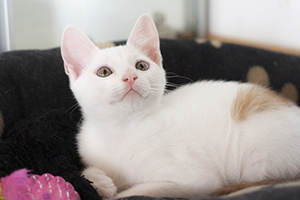 Phantom es un gatito súper cariñoso ronroneador, le encanta ponerse en el sofá a tu lado cuando estas viendo la tele, así que si buscas un compañero de sofá, Phantom es el ideal.