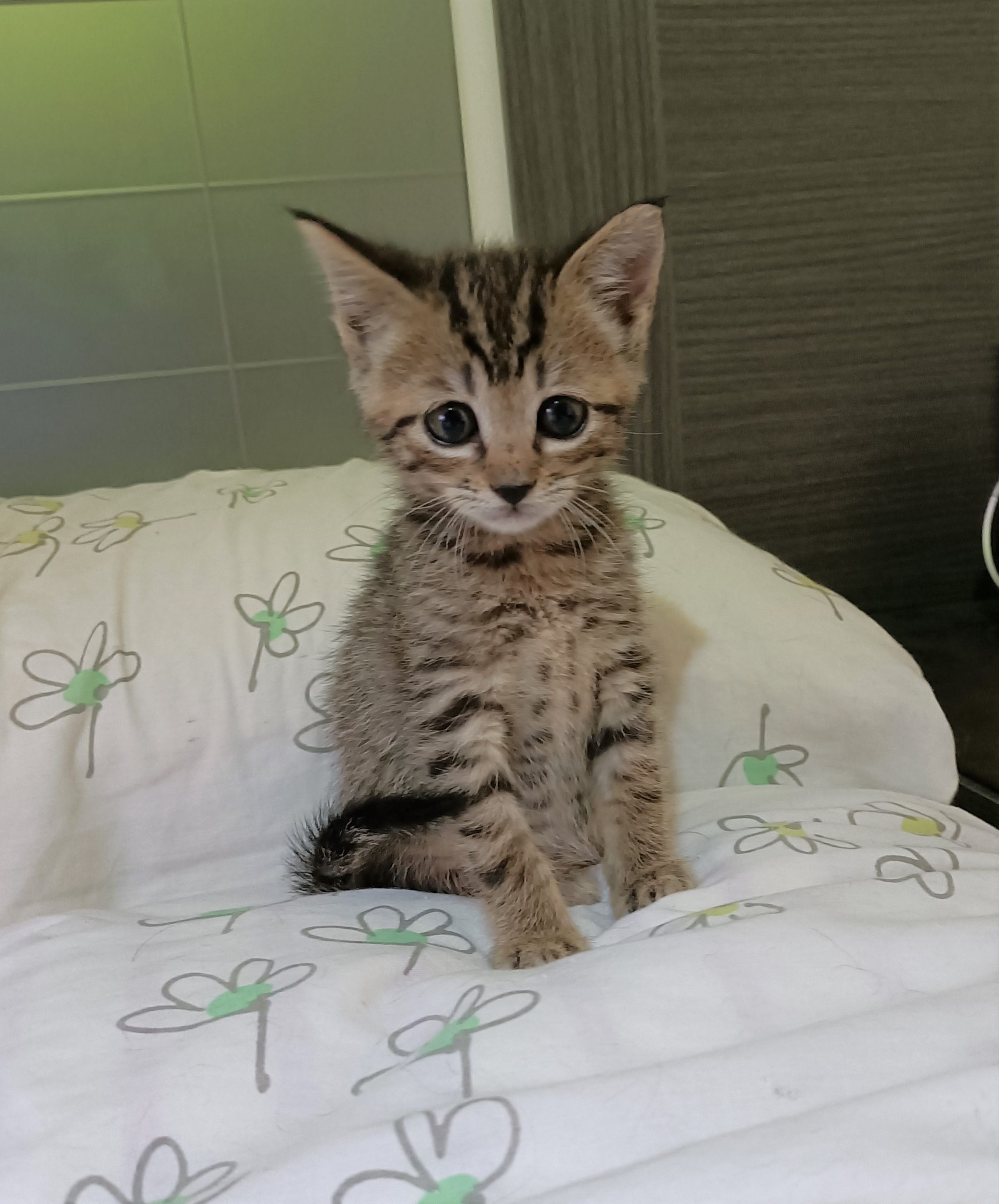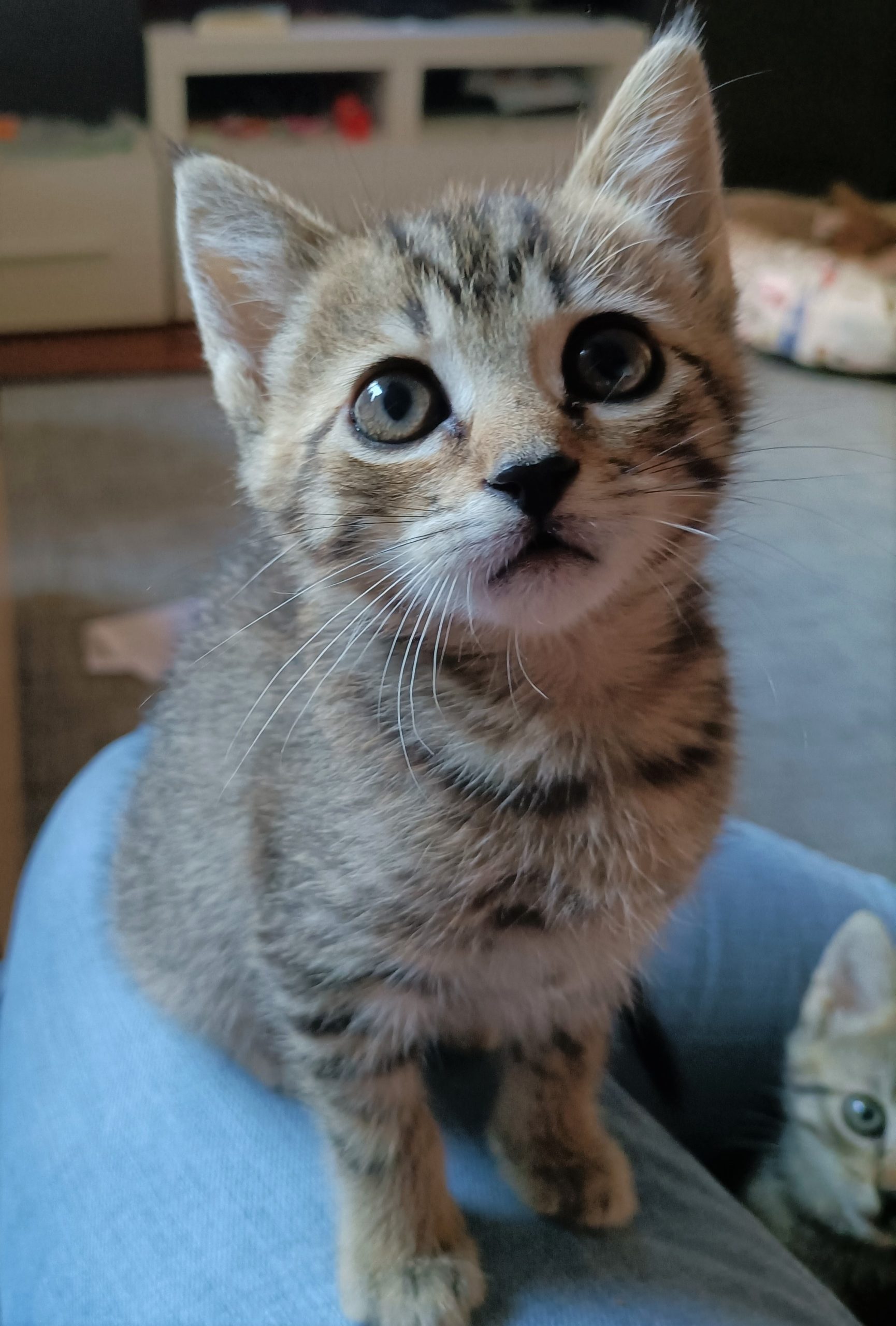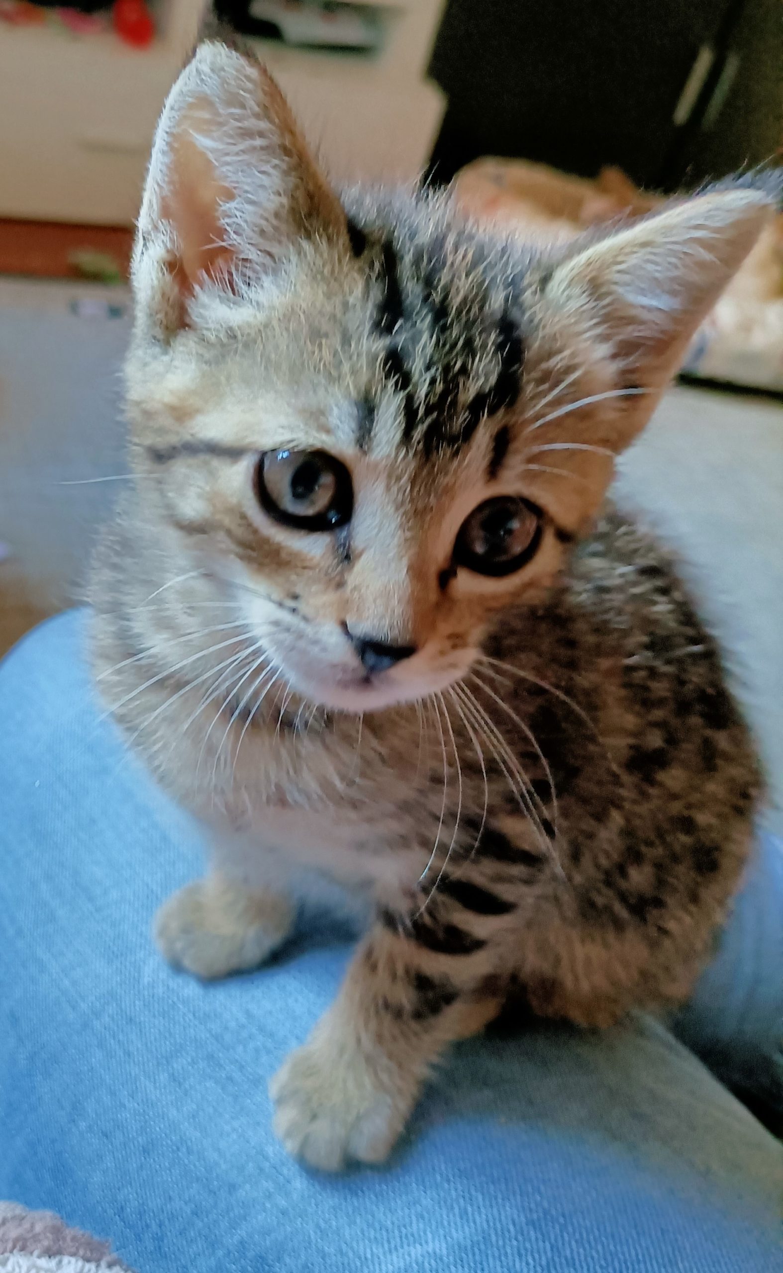 pertenece a la camada Haliwell. Estas tres hermanitas fueron encontradas tiradas en un contenedor de basura. No hay ser más despreciable que el que hace eso con unos bebes indefensos. Por fortuna, alguien que pasaba por alli dio aviso y fueron recogidas. A día de hoy las tres crecen juntas en su casa de acogida y son un amor. Las tres son muy cariñosas y se llevan bien con perros y niños.