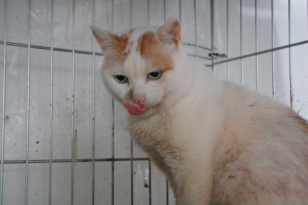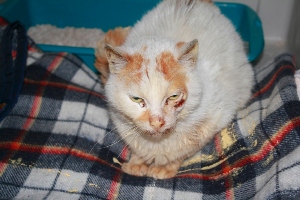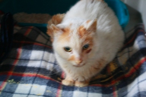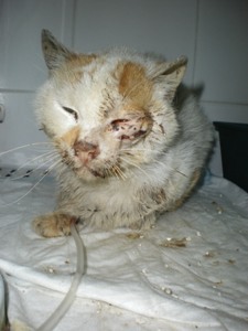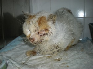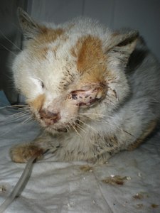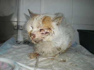 PIKI ha aparecido en este estado. Ahora está en el veterinario, ingresado. El pequeño sige adelante, tiene alta la urea. El veterinario ha dicho que si no se complica que se pondra bueno rapido. No necesita operacion, el mordisco parece de otro gato.