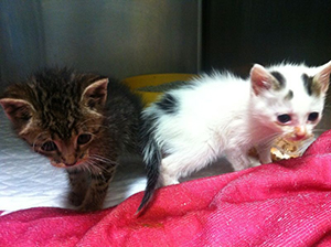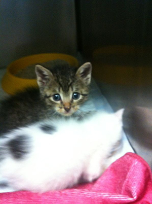 Pin y Pon, pequeñitos, y estos dos hermanitos sí que lo son… tendrán unas 4 semanas, aparecieron en un jardín solitos y de la madre ni rastro… así que les recogieron.