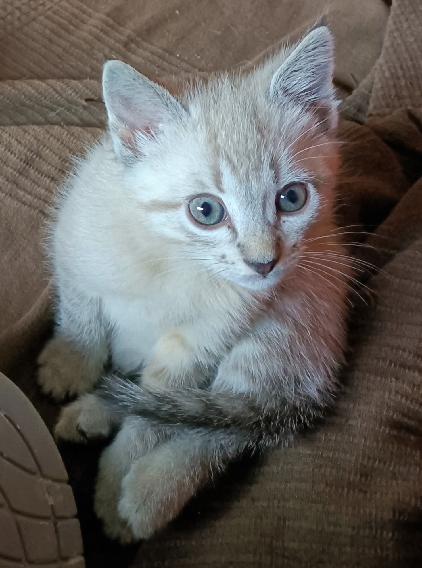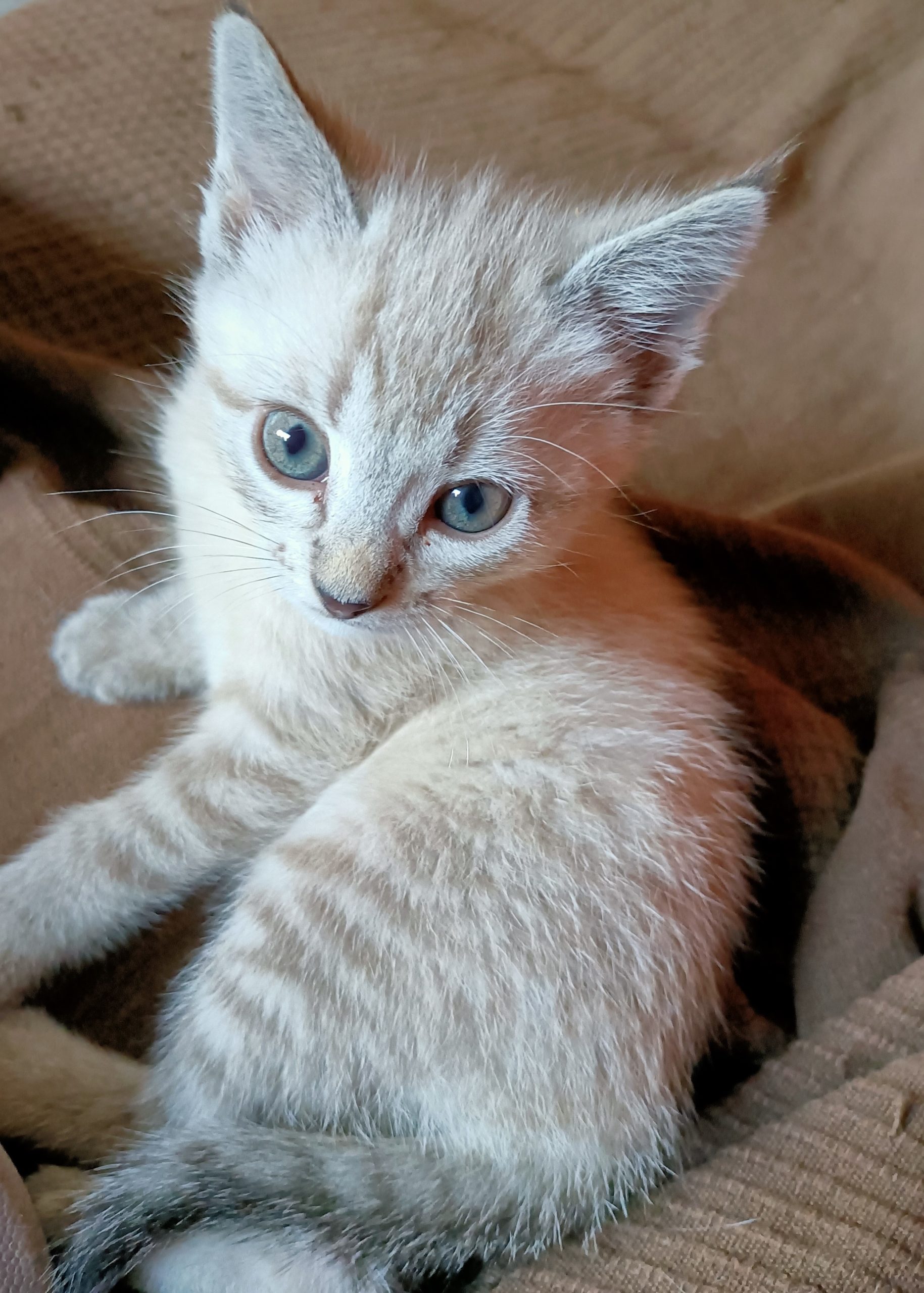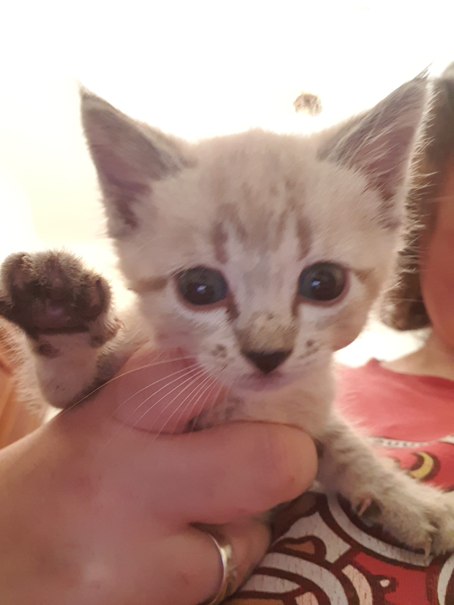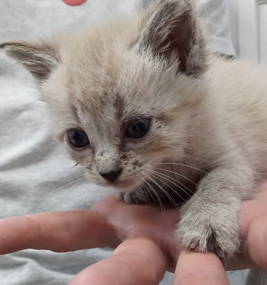 pertenece a la camada Haliwell. Estas tres hermanitas fueron encontradas tiradas en un contenedor de basura. No hay ser más despreciable que el que hace eso con unos bebes indefensos. Por fortuna, alguien que pasaba por alli dio aviso y fueron recogidas. A día de hoy las tres crecen juntas en su casa de acogida y son un amor. Las tres son muy cariñosas y se llevan bien con perros y niños.