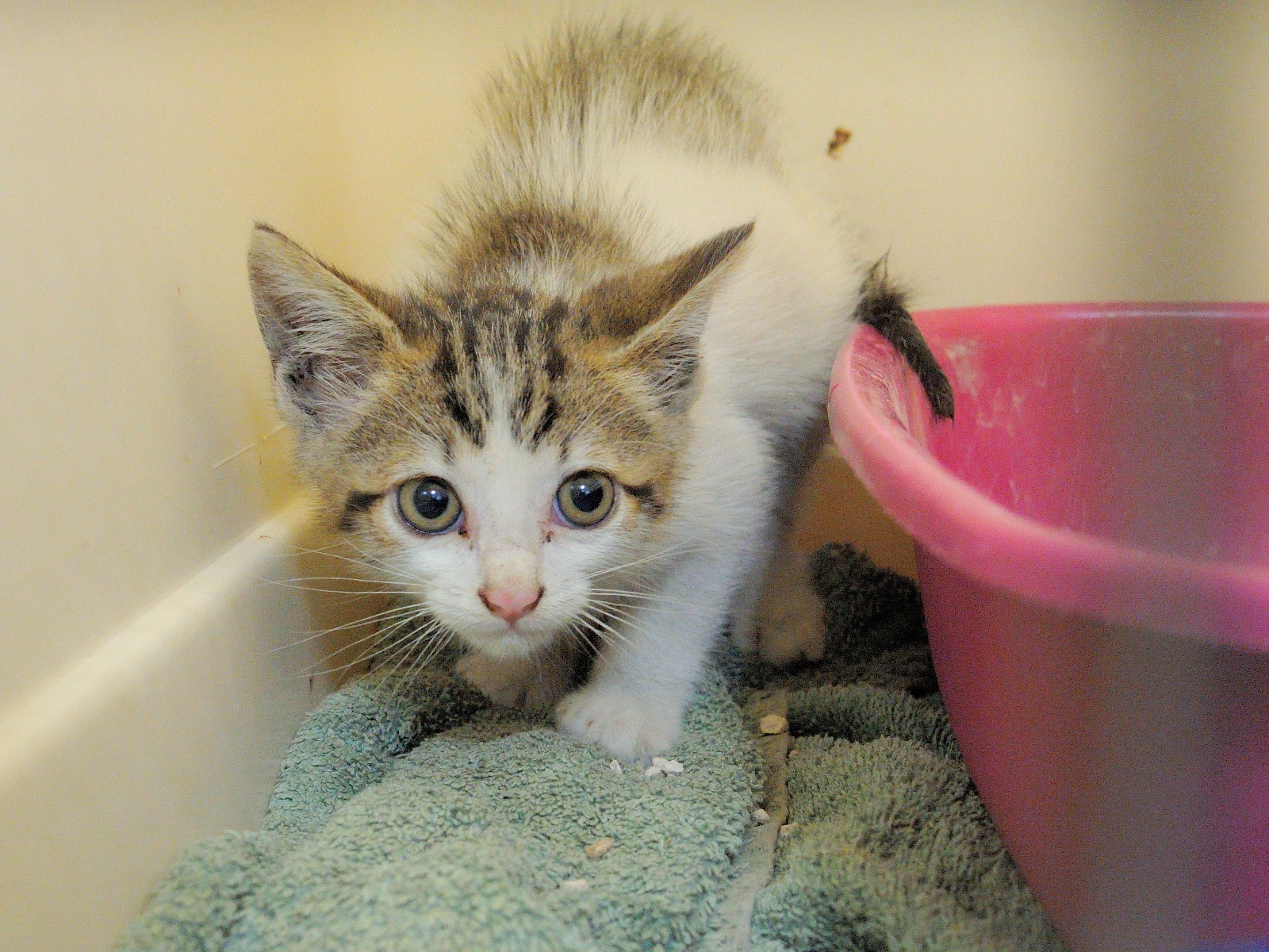 Puki  con apenas dos meses sabe lo que es pasarlo mal. Ha superado con éxito una panleucopenia felina que le ha tenido ingresado durante varias semanas. No tenemos sitio para el así que está aislado en la perrera. Necesitamos con urgencia una casa de acogida sin más gatos o una adopción definitiva. ¡¡Animaos!!