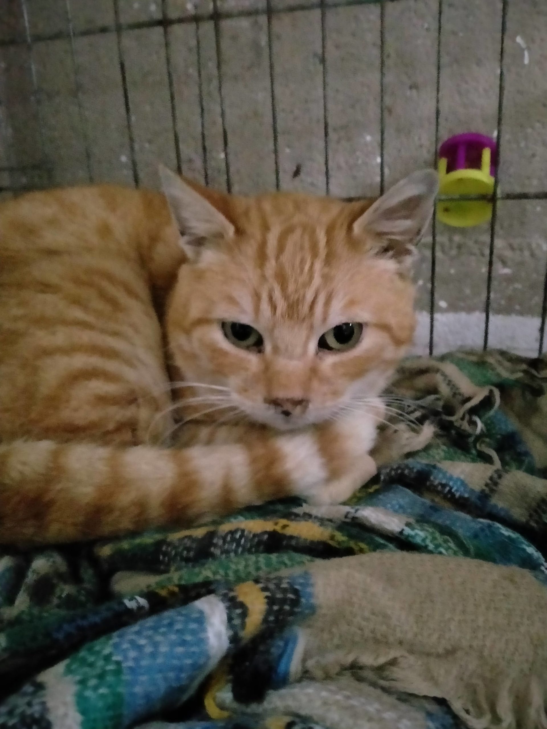 Pumuki procede de una gran colonia donde todos los gatos están con cuadro respiratorio. Es un gato adulto muy bueno aunque los primeros días se mostro bastante asustado. Ha estado en tratamiento para el problema respiratorio de vías altas con el que vino. En breve será esterilizado y testado de Inmunodeficiencia y leucemia felina así que os lo vamos presentando. ¡¡Pumuki quiere un hogar calentito!!