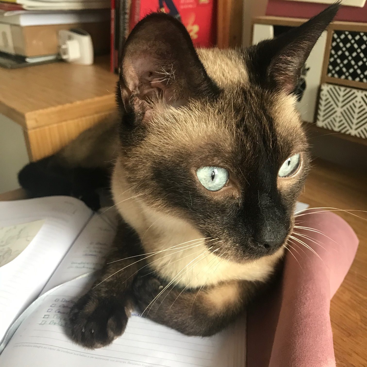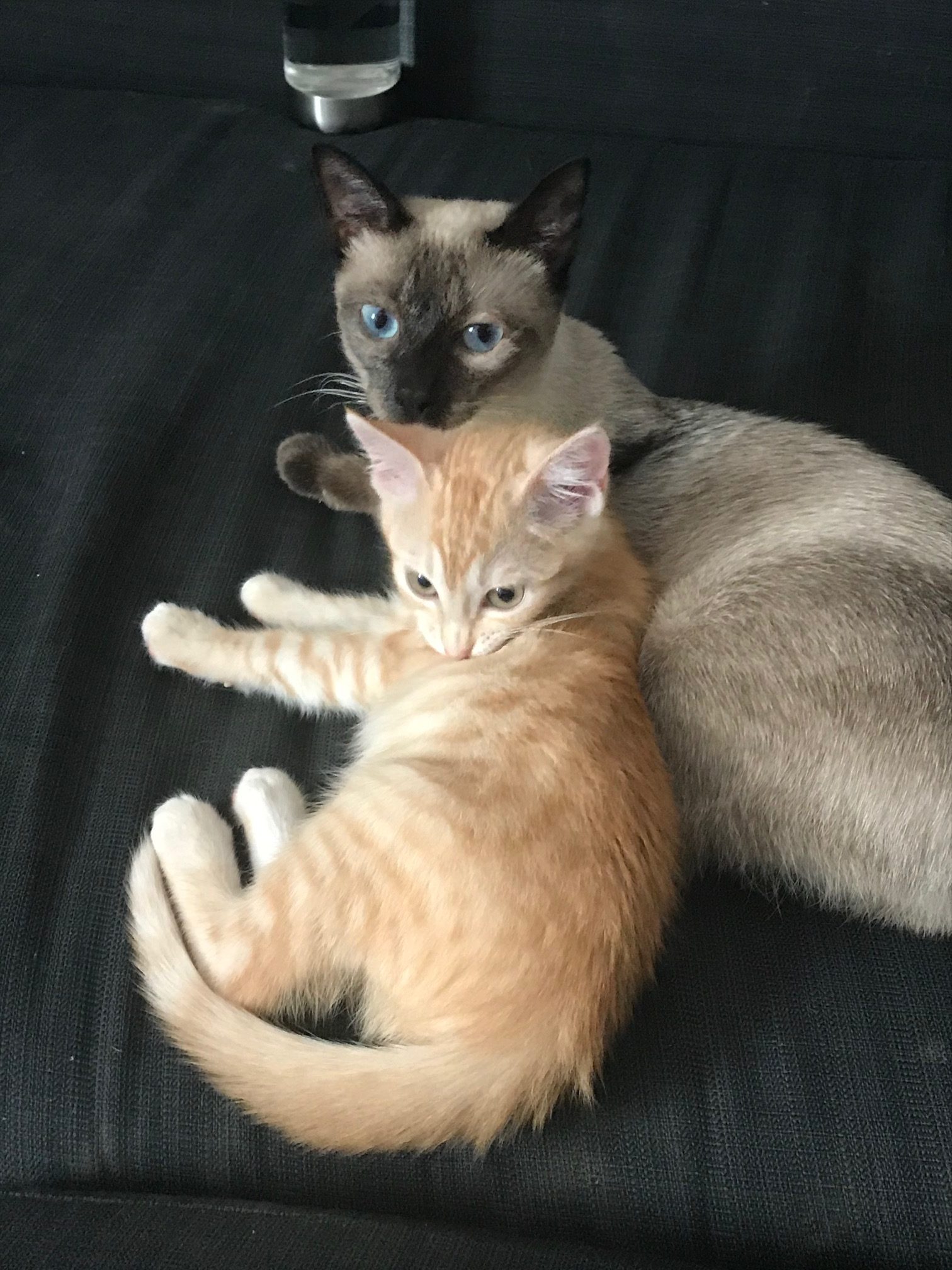 Quiere hacerse amigo de todo el mundo y el resto de gatos, que son un poco rancios, le bufan. Pero como comparte habitación con Atalanta ahí la cosa ha empezado a mejorar y yo creo que en unos días serán inseparables.