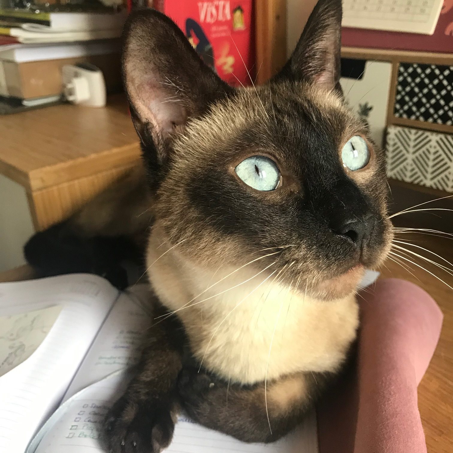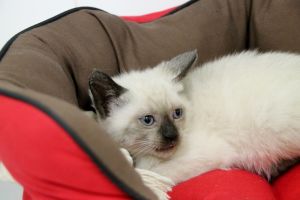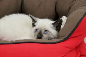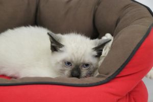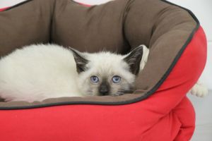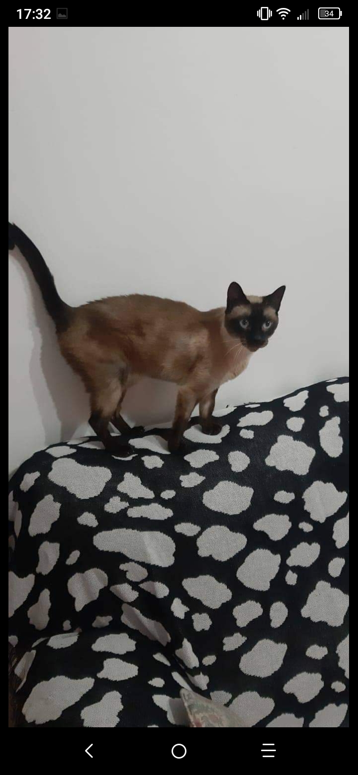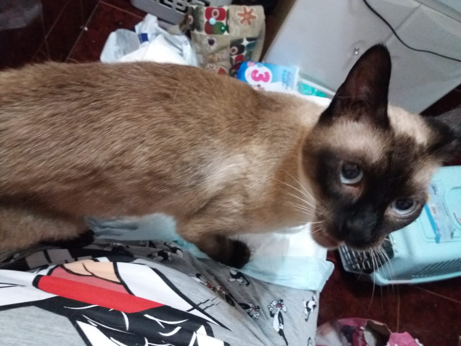 En cuanto a carácter, es un gato hiper dependiente. Necesita estar con alguien todo el rato. En cuanto te pierde de vista, empieza a lanzar gemiditos. Es parlanchín, pero no maúlla, solo lanza gritos, gemidos y ruidillos varios. Le gusta tumbarse a tu lado o encima. De momento es tímido y muy tranquilo y aún se asusta un poco si alguno de nosotros o los gatos hacen algún movimiento brusco o ruido fuerte.